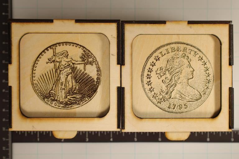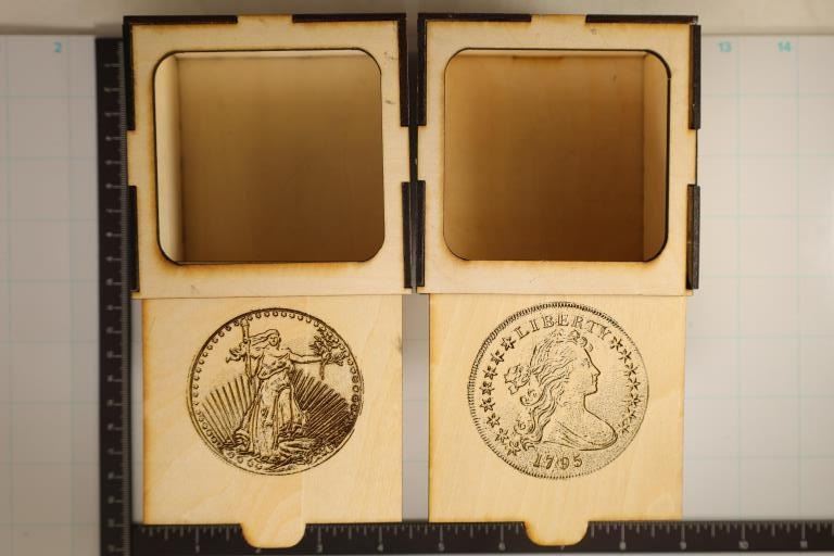 4" X 4" X 2" FEATURING A ST. GAUDENS AND FLOWING HAIR DOLLAR