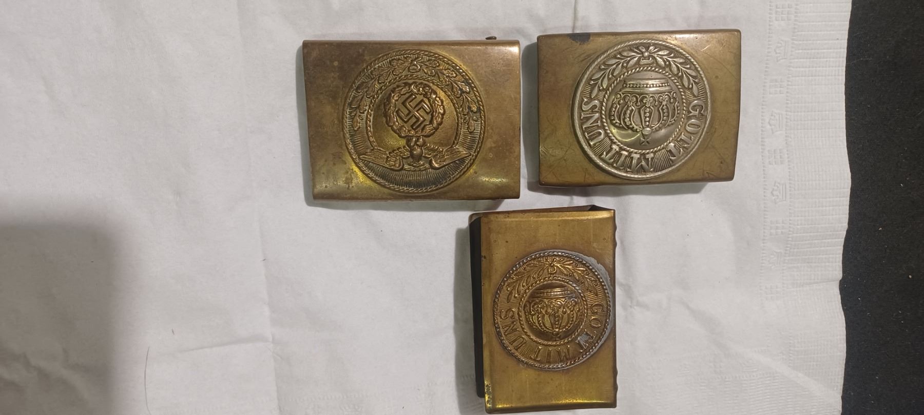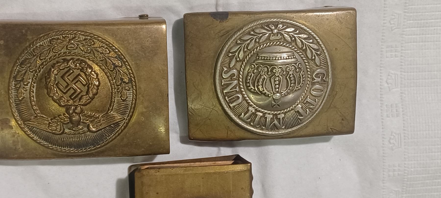 2 WW II BELT BUCKLES AND MATCH BOX HOLDER GERMAN