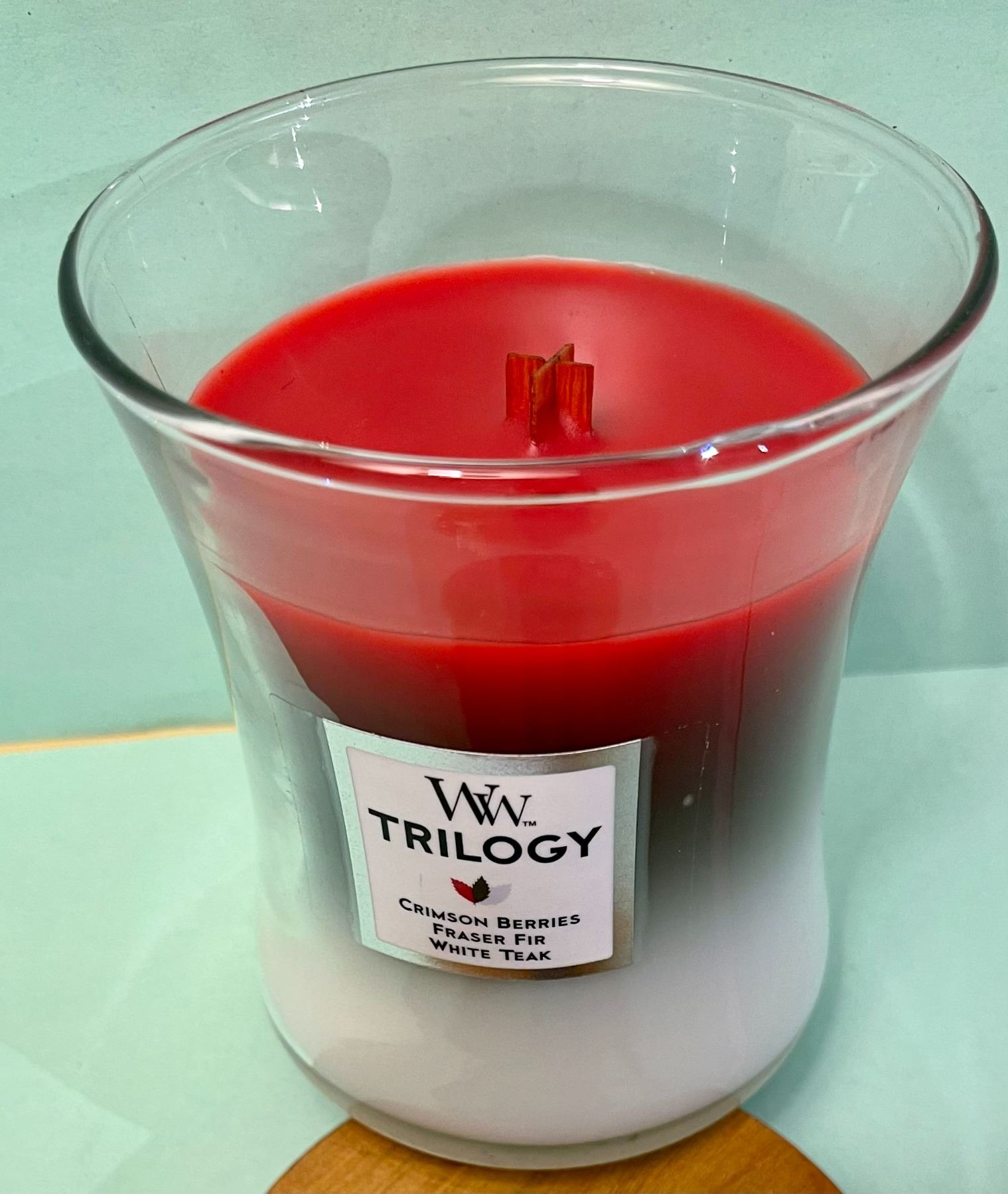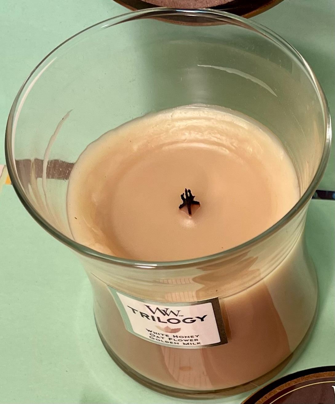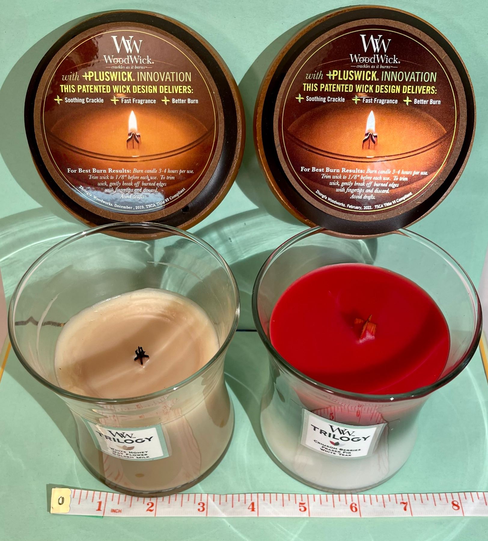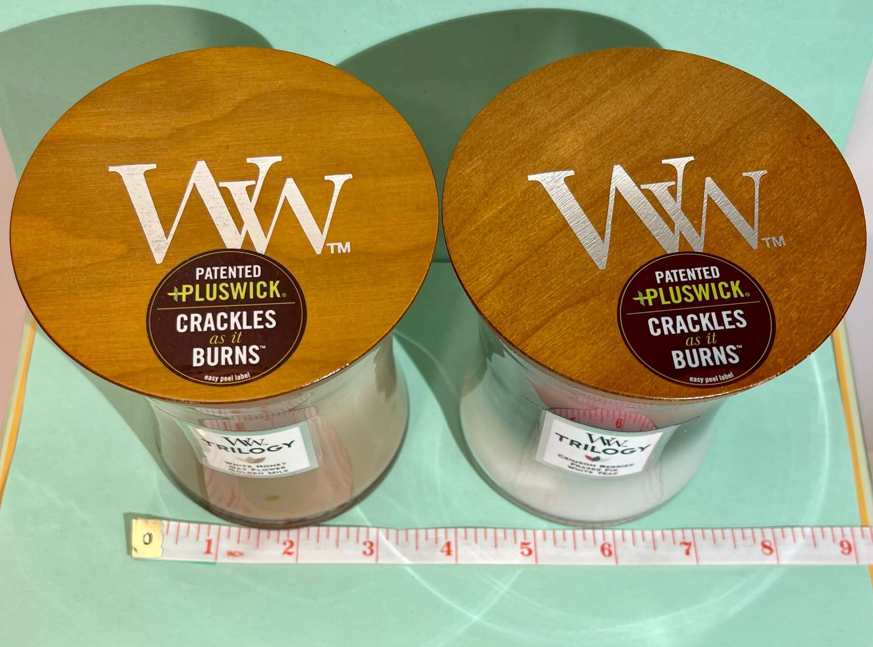 2 WW WoodWick candles. 1 is new, unused. Long burn. Crackles.