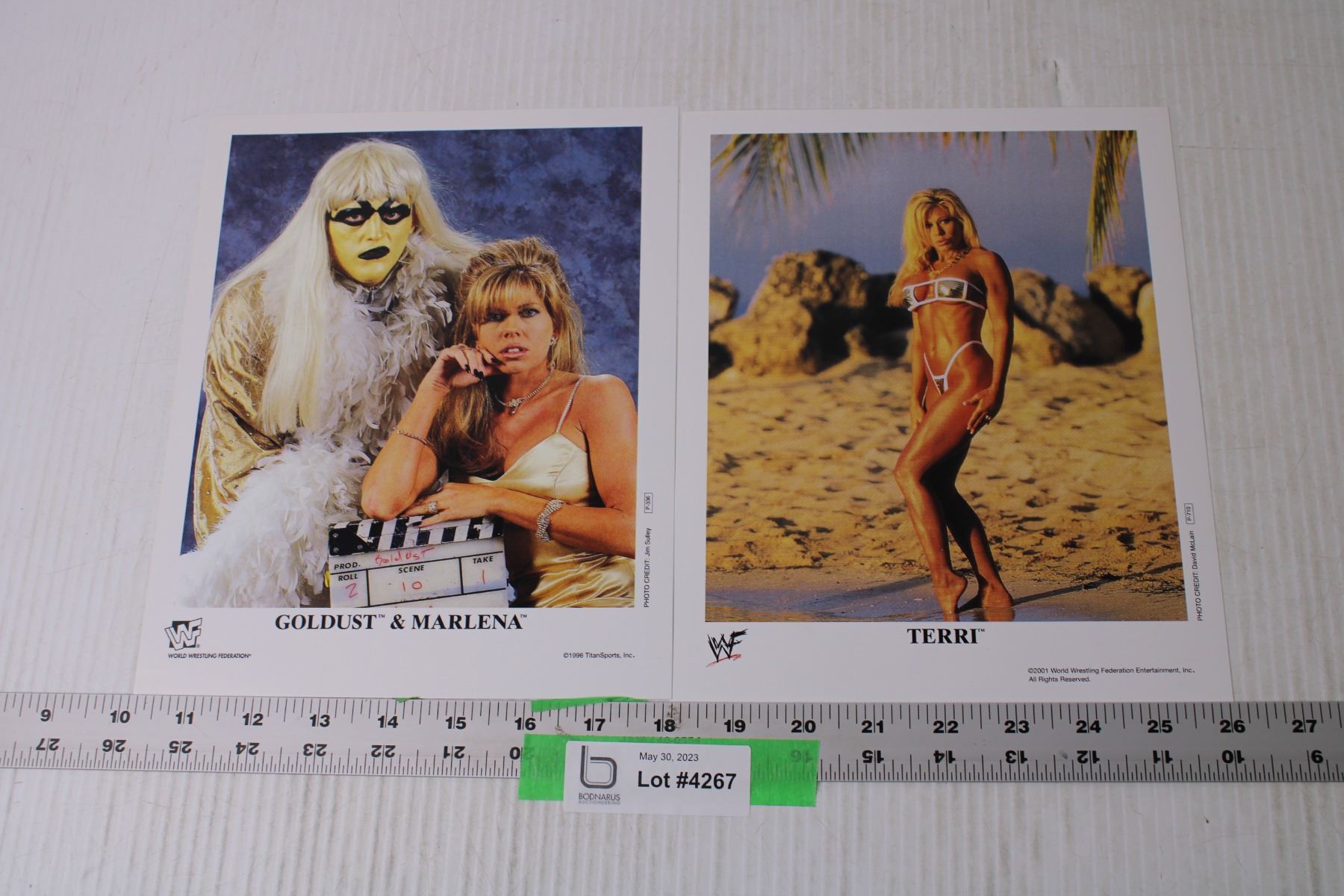 (2) WWF Wrestling Photos - 10" x 8", Terri, Goldust and Marlena