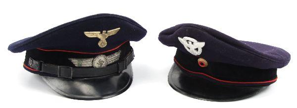 A lot of two civilian Fire Brigade visors. One in very good condition with some cracking to the sweat band, otherwise complete and free of mothing. The second is minus the chin strap and some flattening otherwise good.