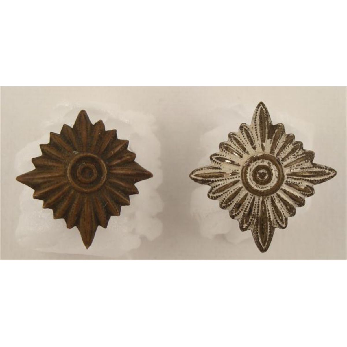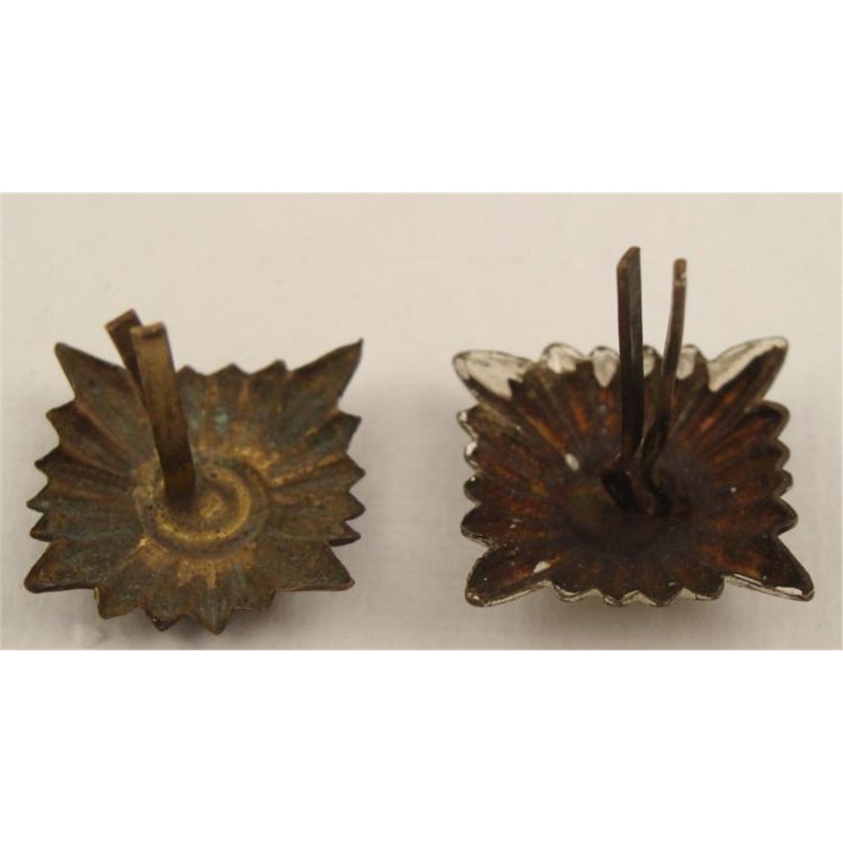 These are two original WWII era Nazi pips from shoulder boards. One is brass tone and the other is painted white. They are in very good condition, both with both prongs present. There is some surface and paint wear.