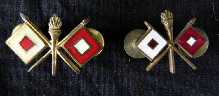 2 WWII SIGNAL CORPS INSIGNIA-ENAMEL & GILT-CRIMP BACK
