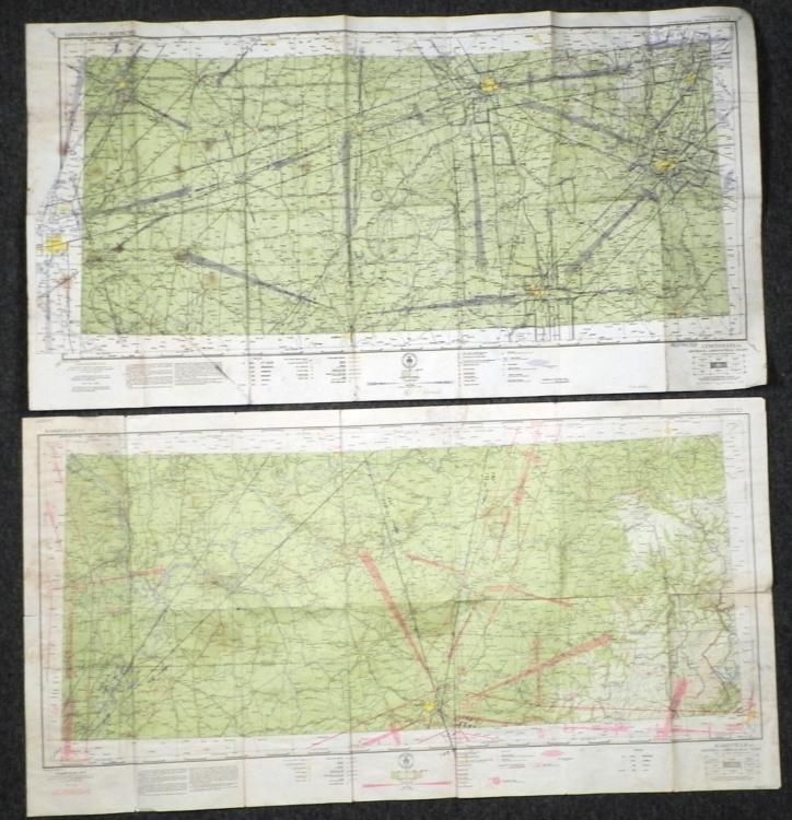 THESE ARE TWO RARE 45X24" WWII STRATEGIC MILITARY MAPS OF CINCINNATI & NASHVILLE USED IN USAAF TRAINING. THEY ARE DATED 1941 AND 1942. THESE LARGE AIR MAPS WERE CREATED BY THE U.S. COAST GUARD & GEODETIC SURVEY TEAMS TO TRAIN BOMBER PILOTS DURING WWII. *