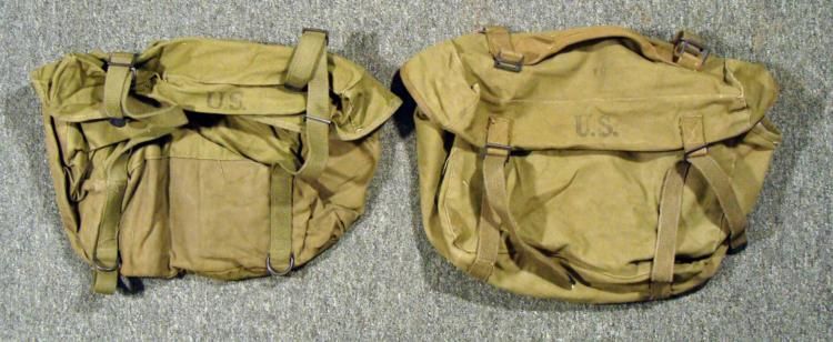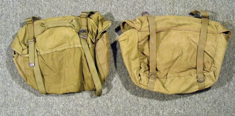 2 WWII US ARMY HAVERSACKS-OLIVE DRABSTRAPS AND BUCKLESPRESENT