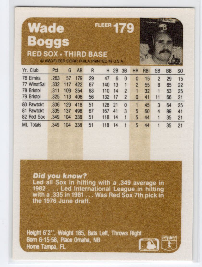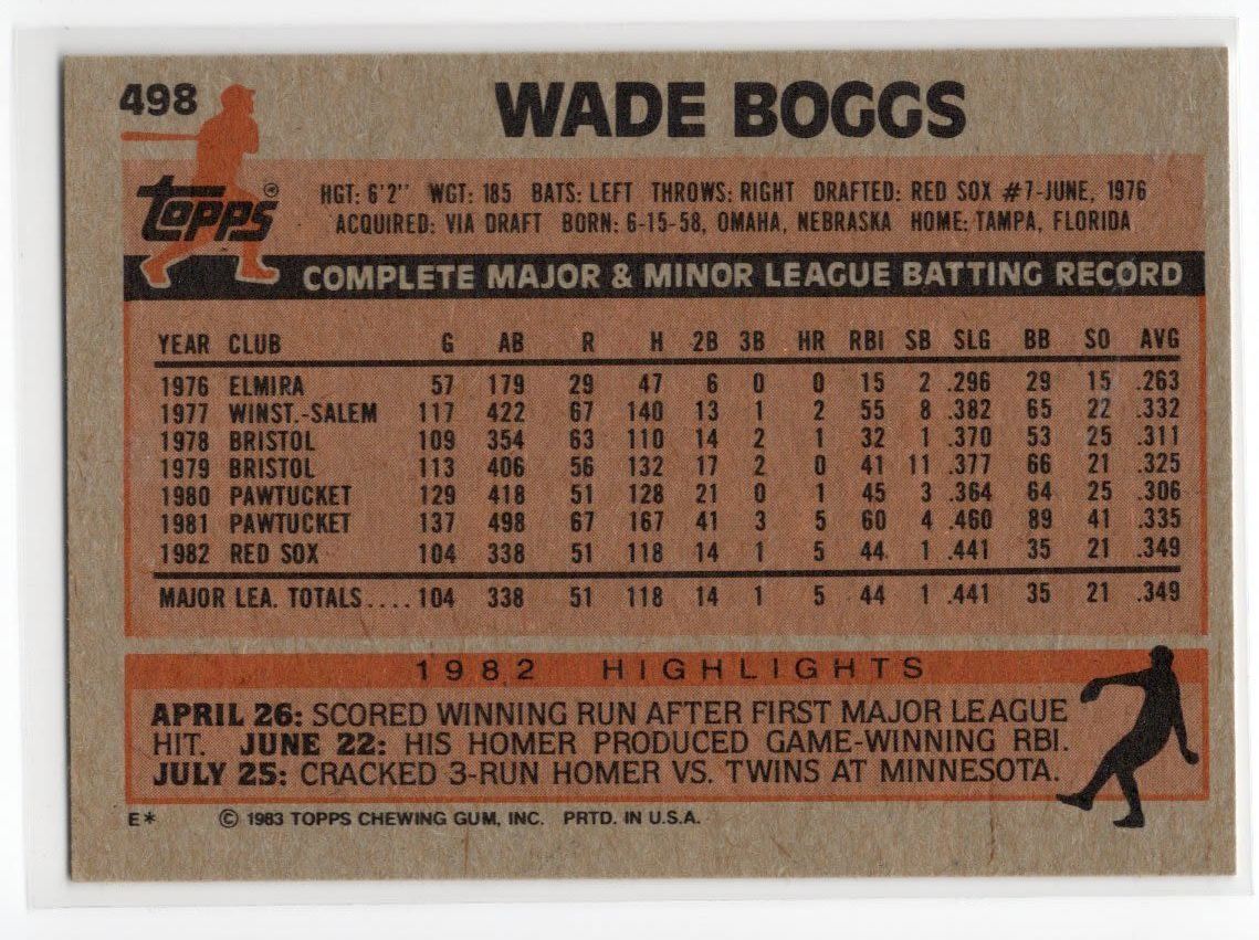 2 Wade Boggs ROOKIE CARDS: 1983 Fleer Card number 179 & 1983 Topps Card number 498