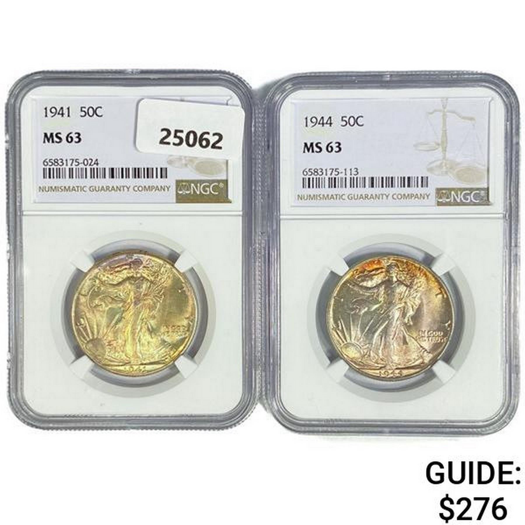(2) Walking Half Dollars (1941, 1944) NGC MS63
