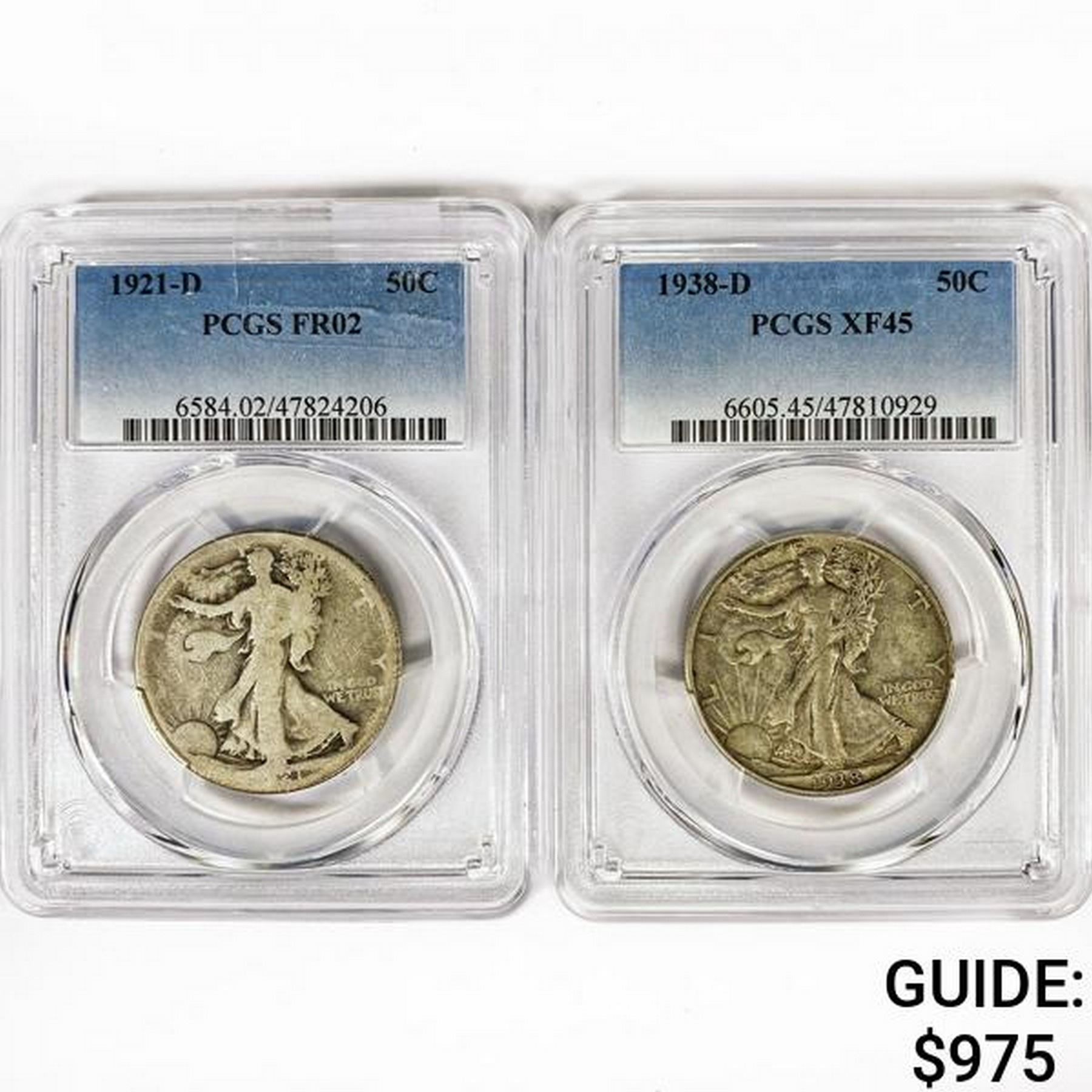 (2) Walking Half Dollars PCGS (1921-D, 1938-D)