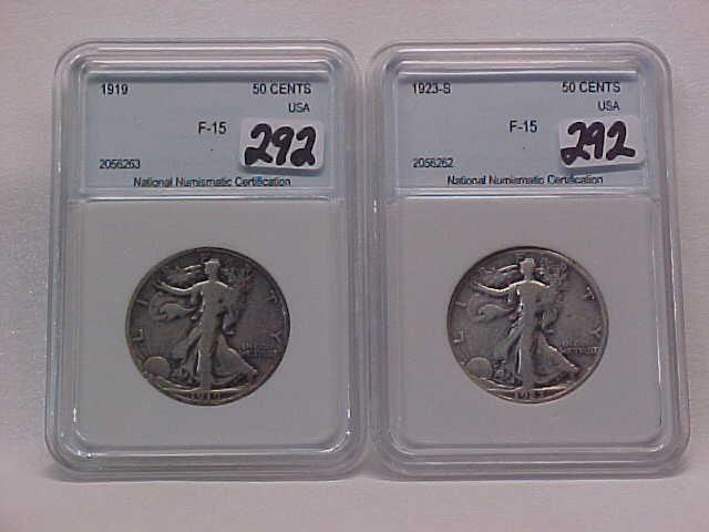 2 Walking Liberty Half $: 1919 NNC F15 (weak detail), 1923S NNC F15
