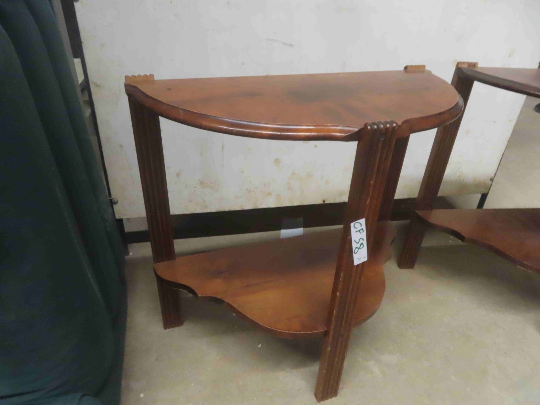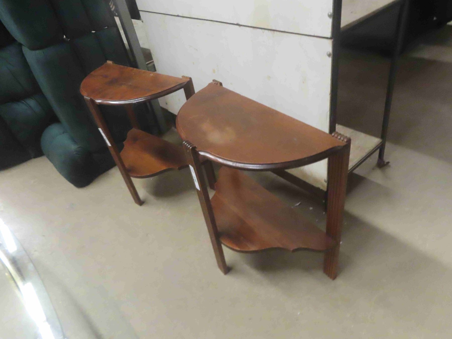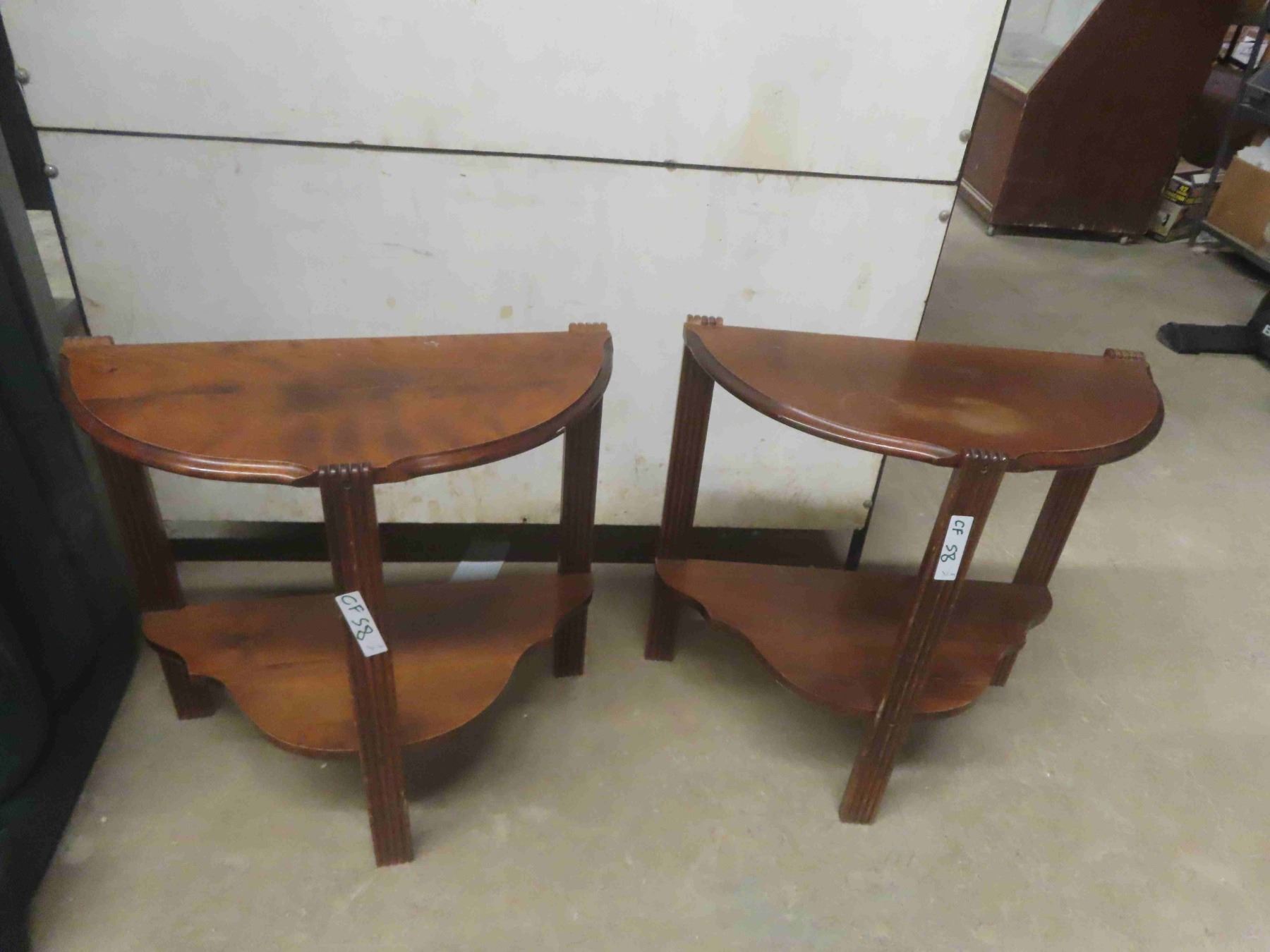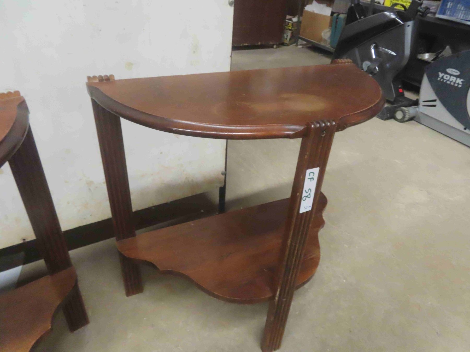 2 Walnut Vintage 1/2 Moon Stands 24" t up to 24" wide up to 12" deep