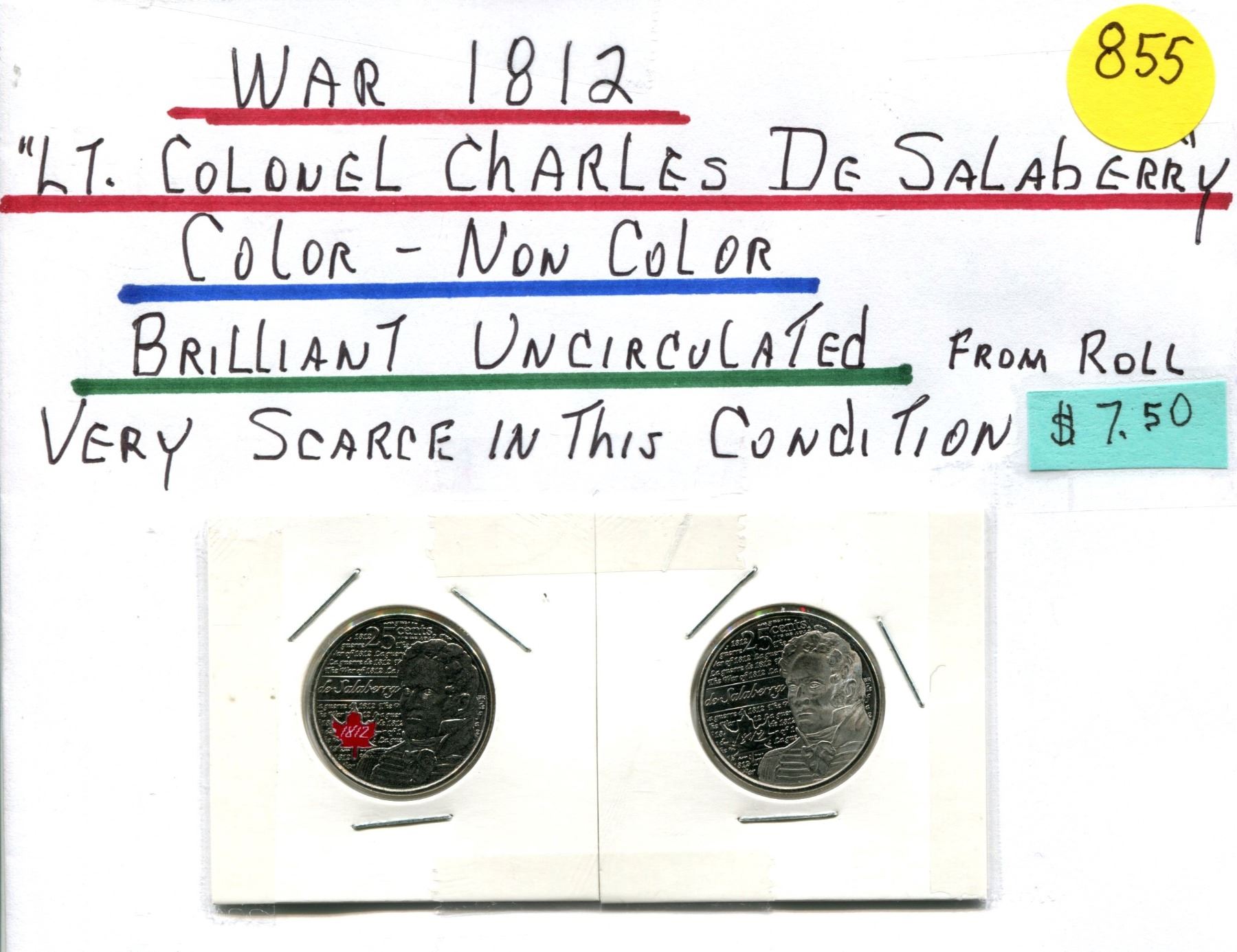 (2) War of 1812 25¢ "Lt. Colonel Charles De Salaberry" - Colour & Non-Colour