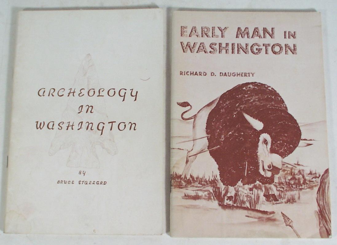 1) Archeology in Washington by Bruce Stallard. Softcover. 1958. 64 pages. Good condition. 6" x 9". 2) Early Man in Washington by Richard D. Daugherty. Softcover. 66 pages. 1959. Fair condition. 6" x 9"