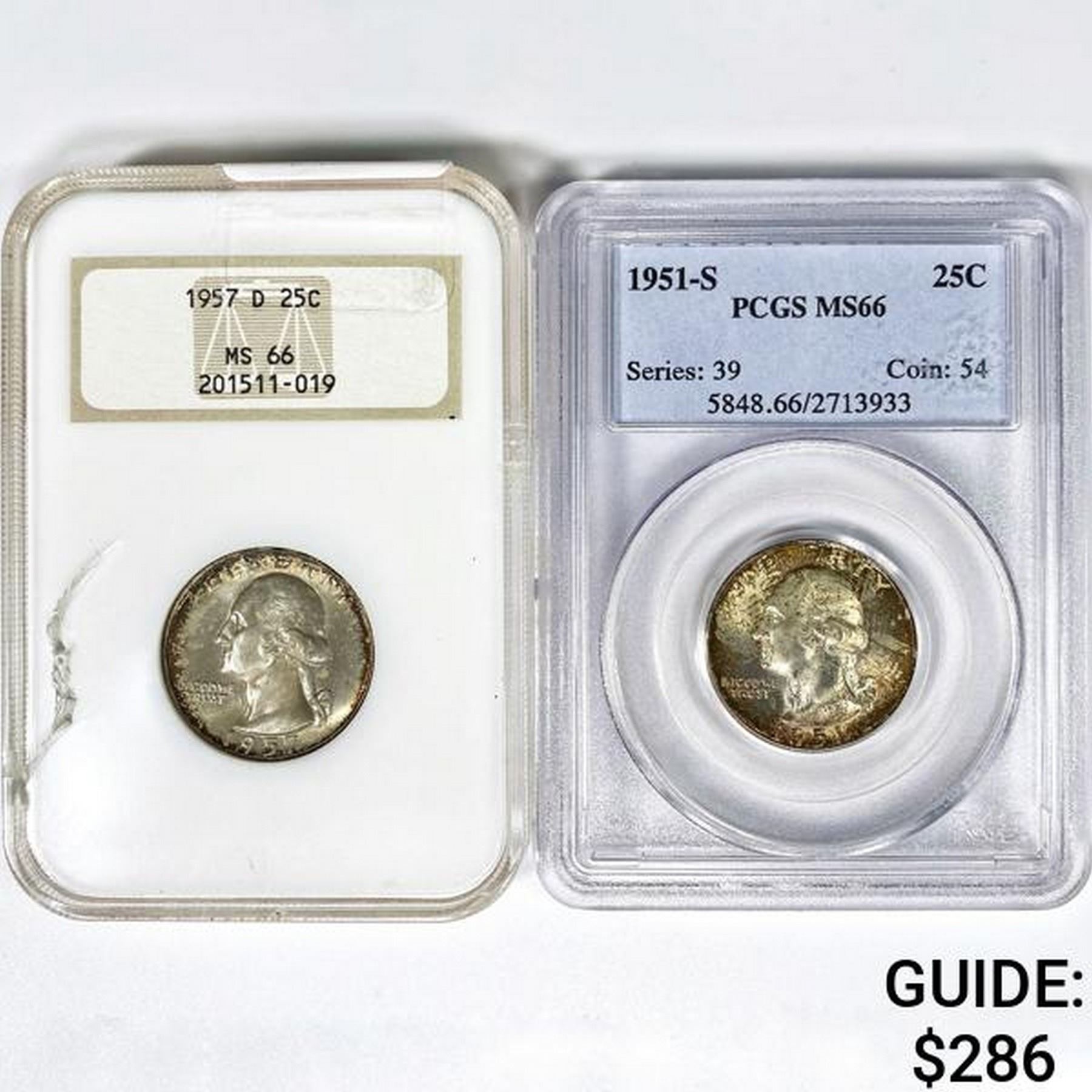 (2) Washington Quarters NGC/PCGS MS66 1951-1957