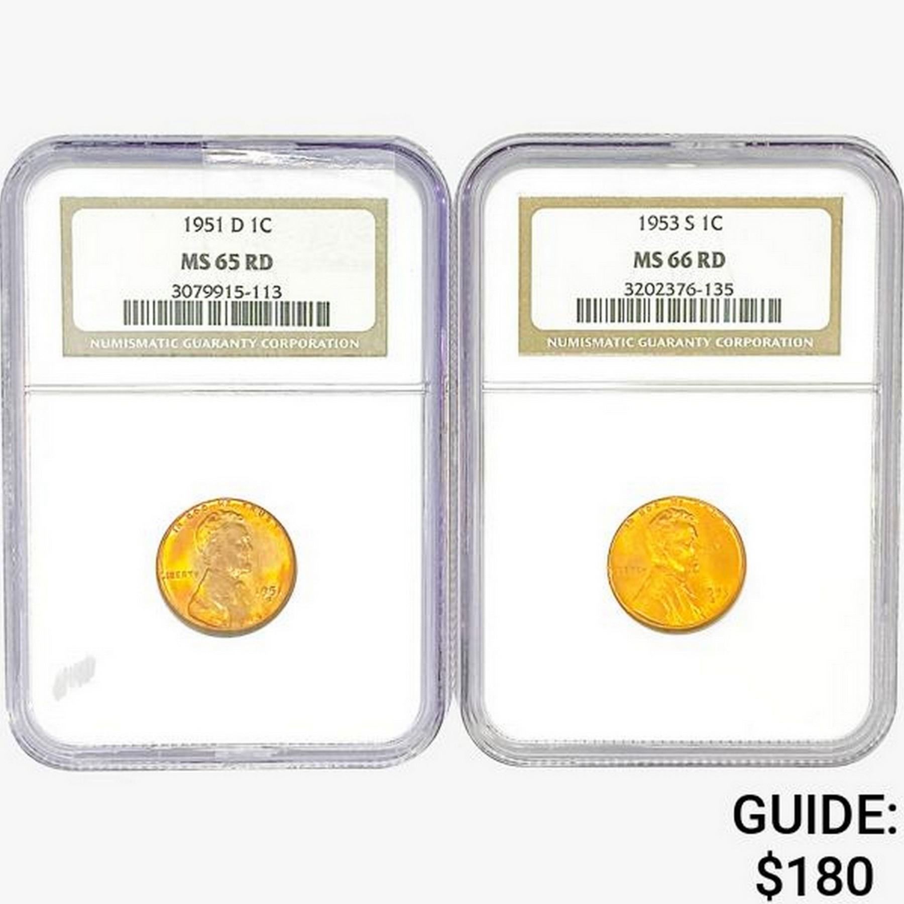 [2] Wheat Cent NGC MS65-66 RD [1951-D, 1953-S]