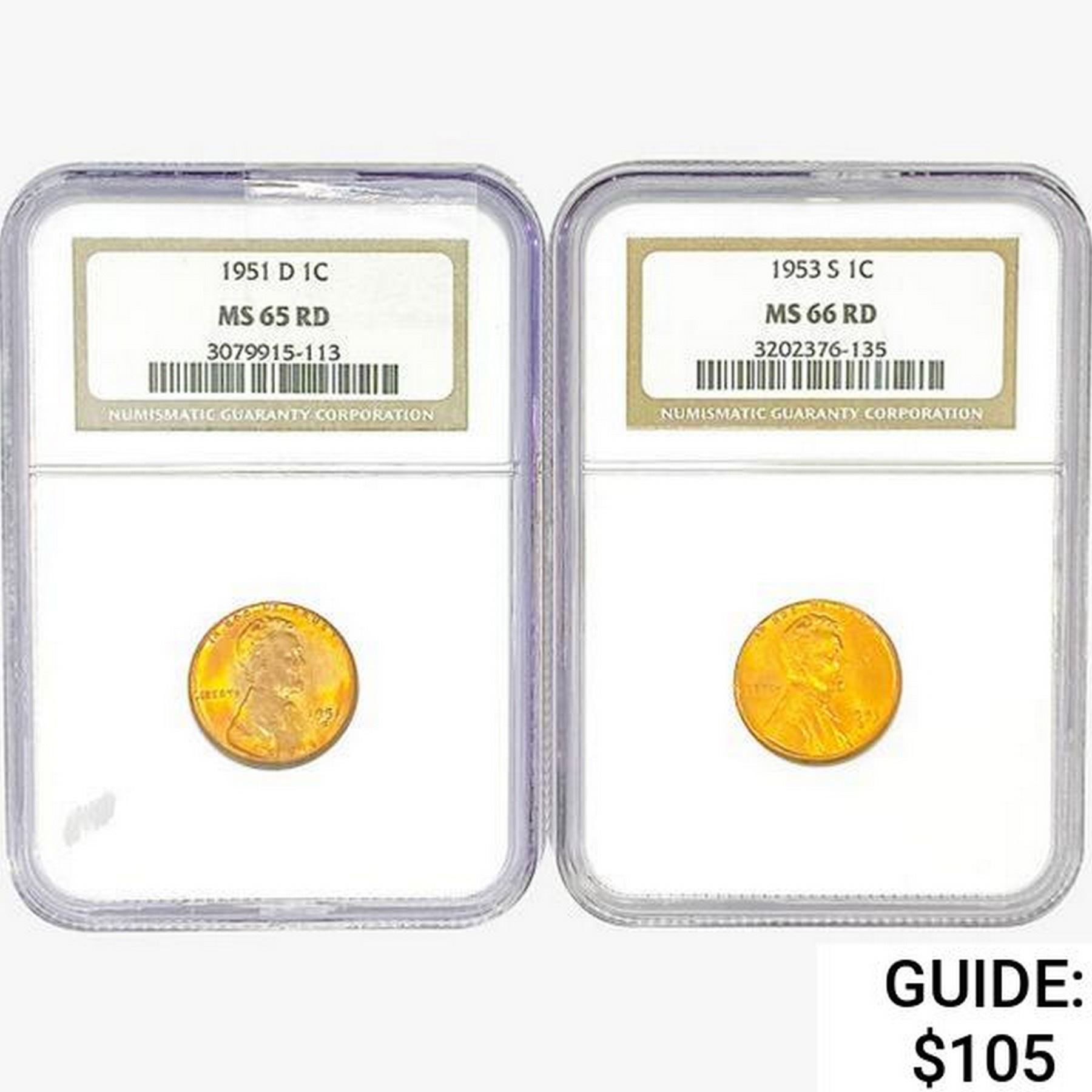 [2] Wheat Cents NGC MS65-66 RD [1951-D, 1953-S]