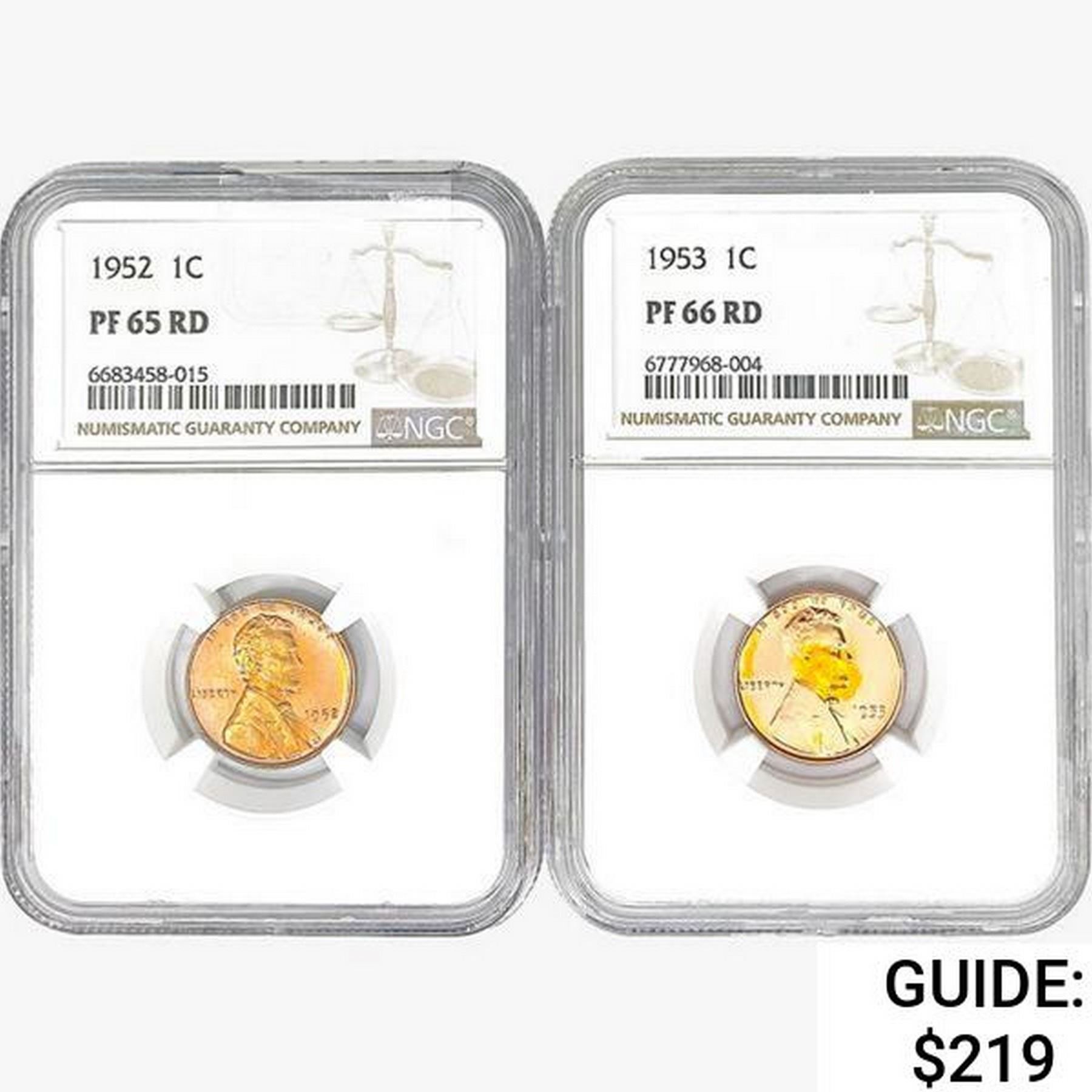 [2] Wheat Cents NGC PF65-66 RD [1952, 1953]