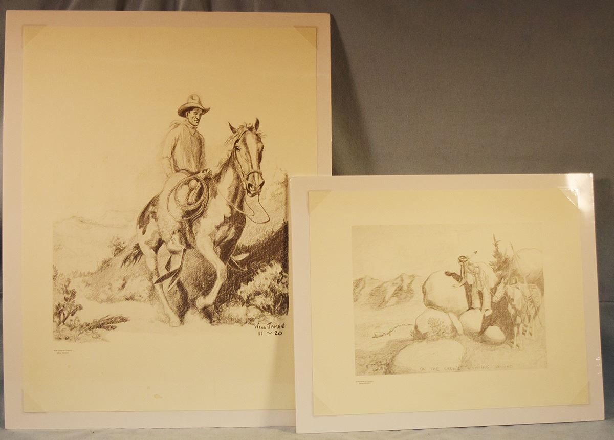 (2) Will James prints: On the Crow's Stomping Ground, 9" x 12" & Lone Cowboy, 16" x 14", open editions