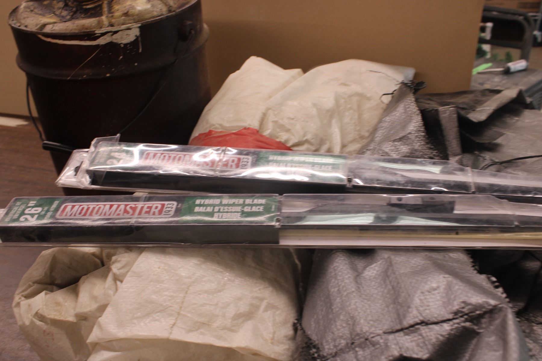 2 Windshield Wipers Gas Can and 2 Partial Tarps