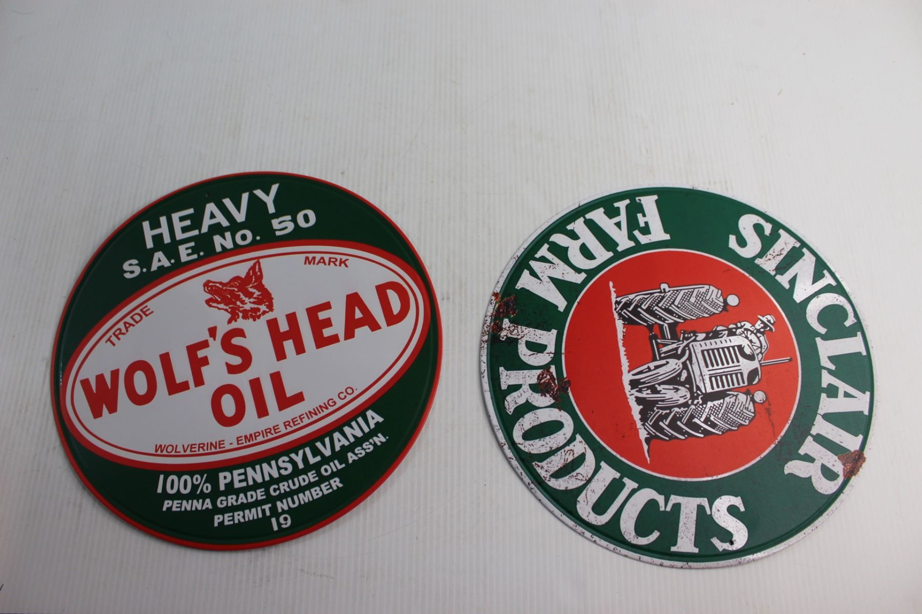 (2) Wolf's Head Oil and Sinclair Signs 12''
