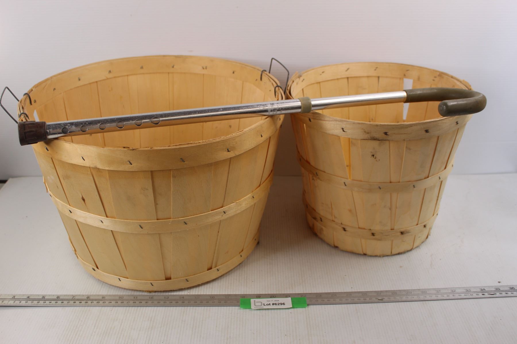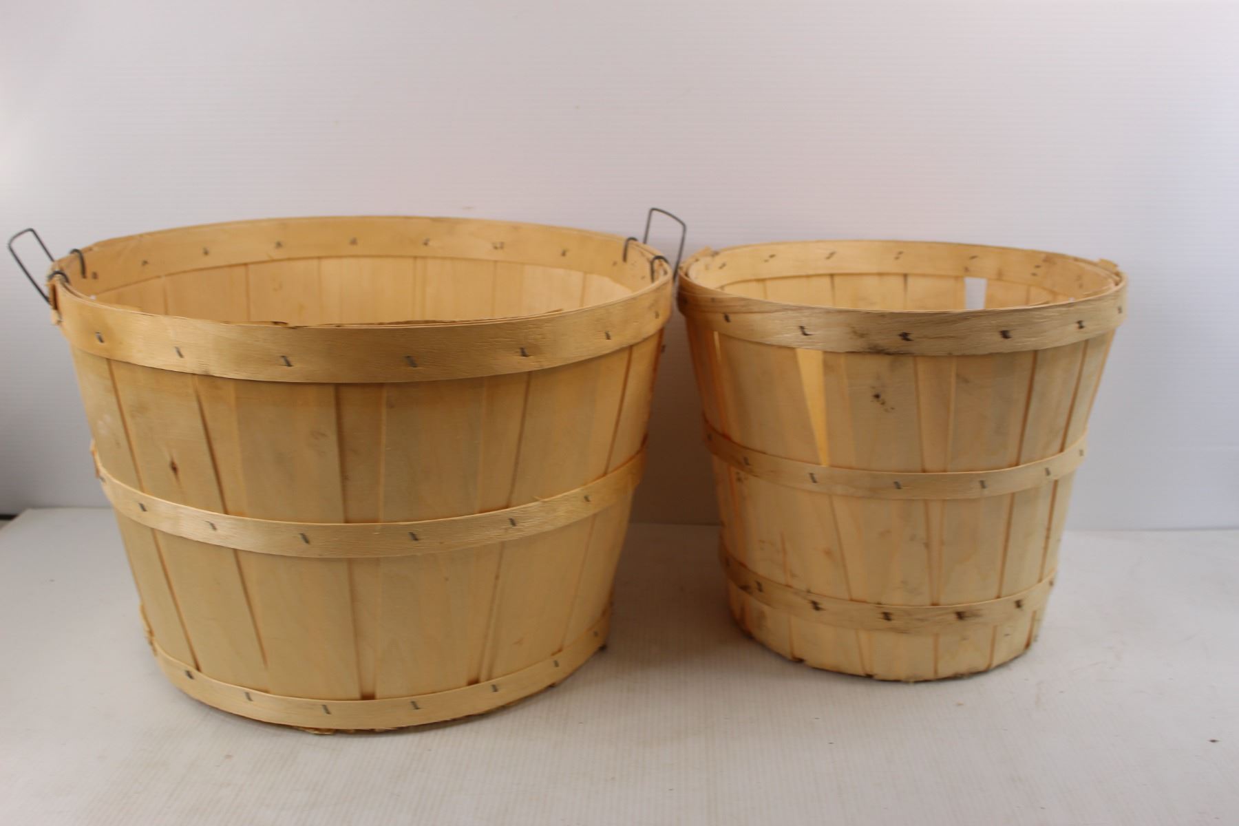 (2) Wood Bushel Baskets- Different Sizes, Cane