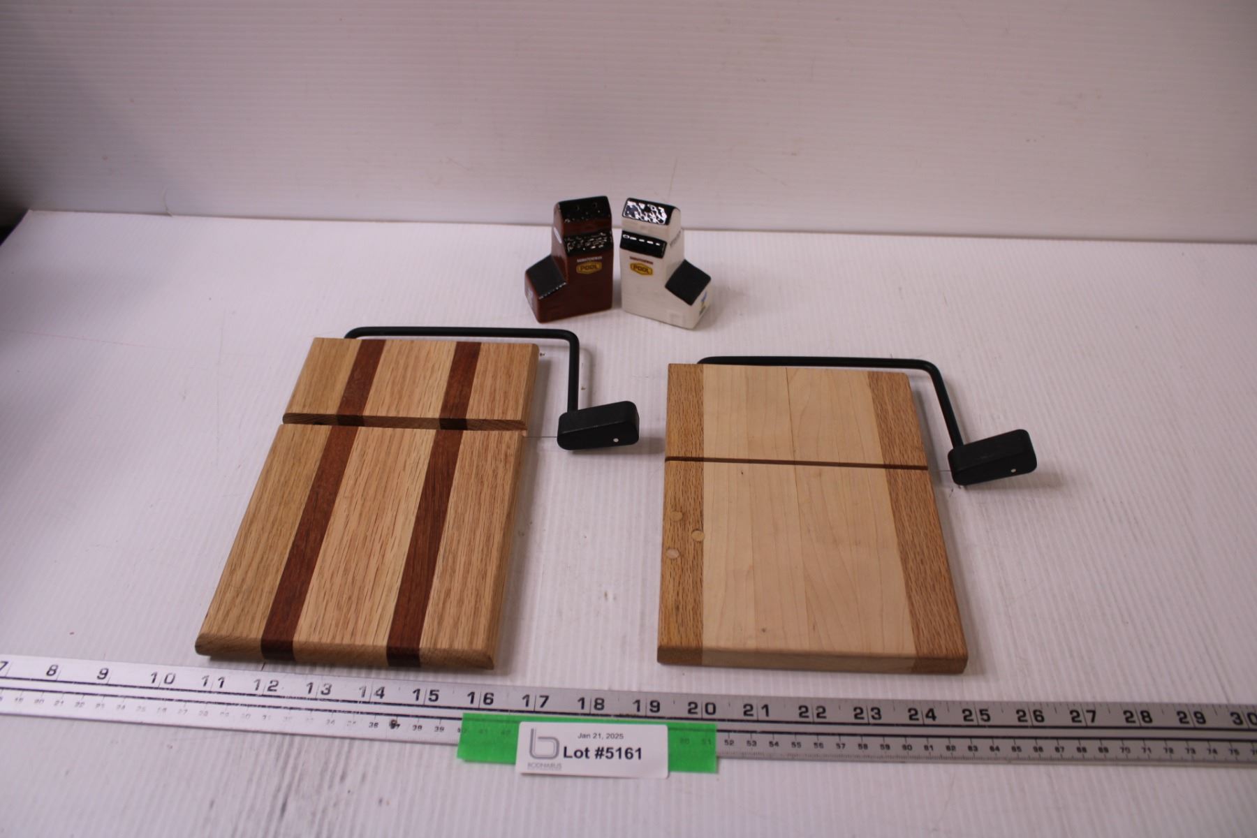 (2) Wood Cheese Cutting Boards, Saskatchewan Pool Salt & Pepper Shakers