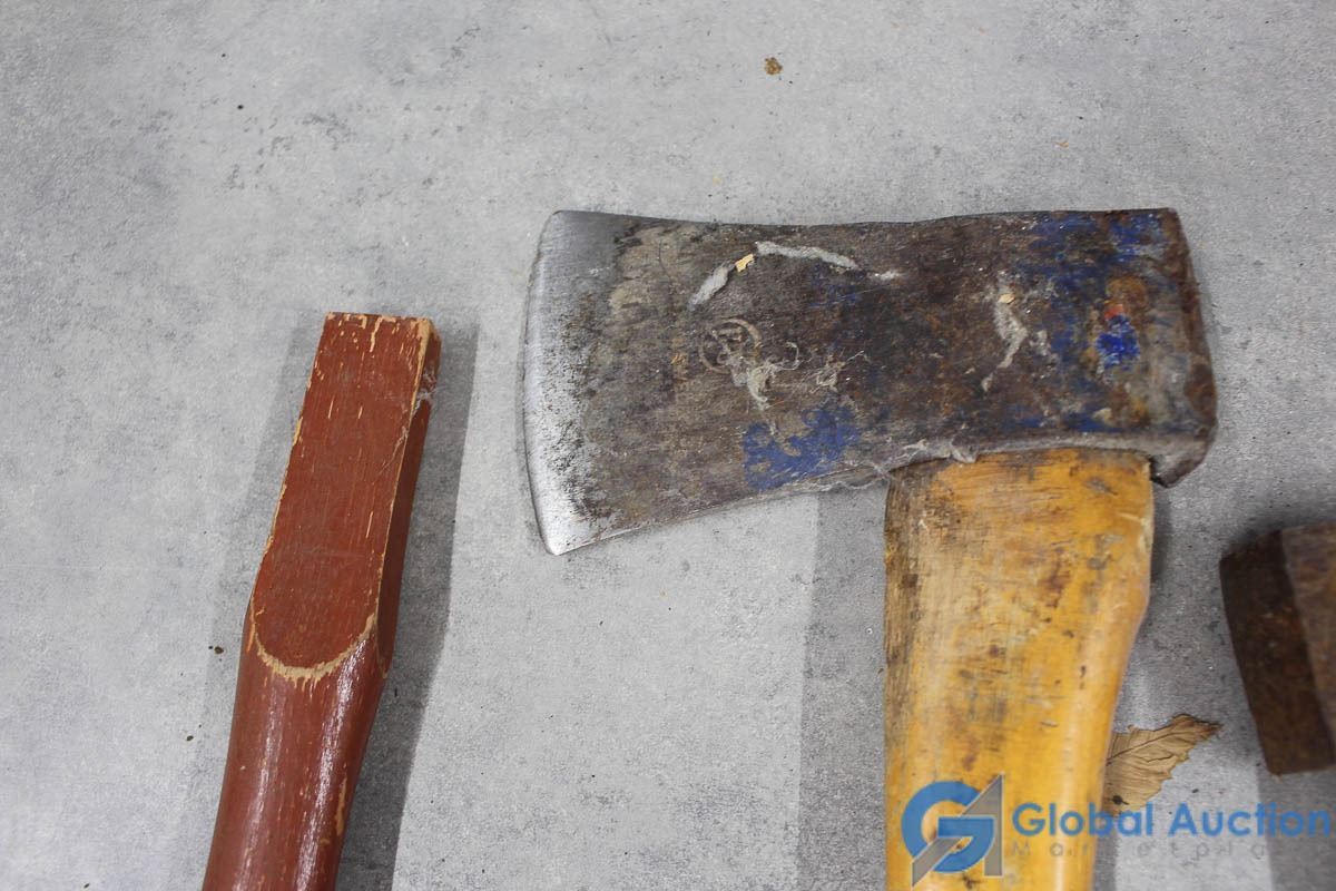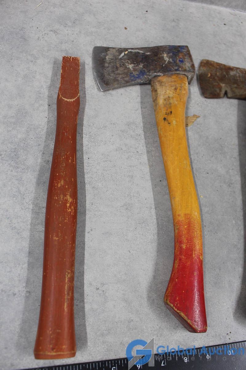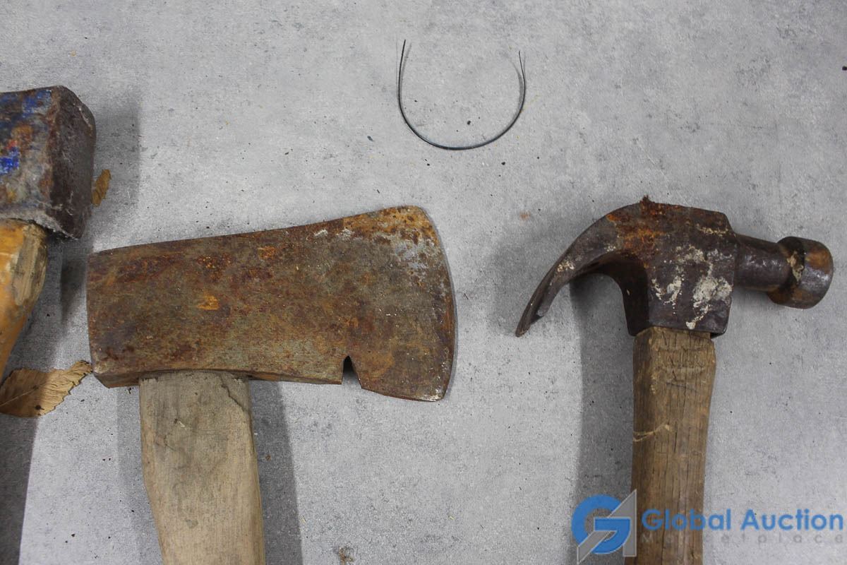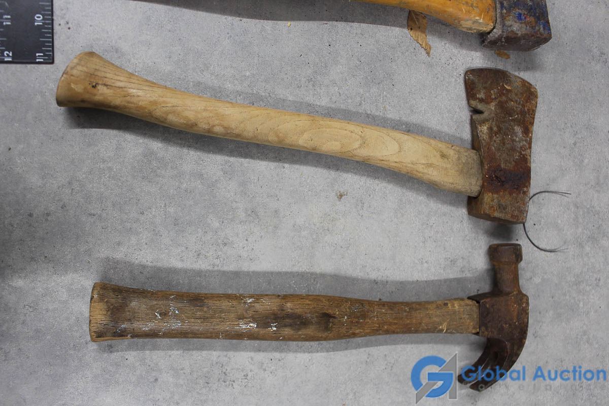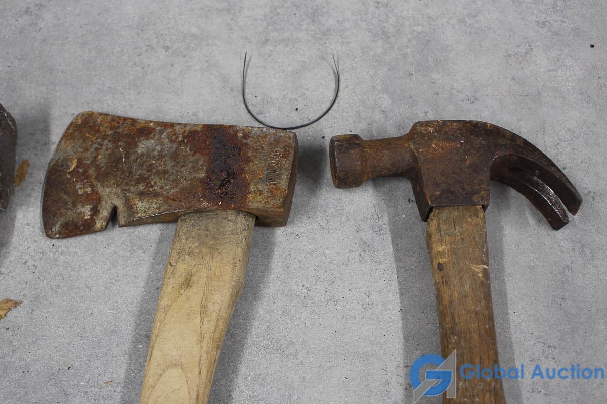(2) Wood Handled Hatchets, Hammer, & Unused Handle