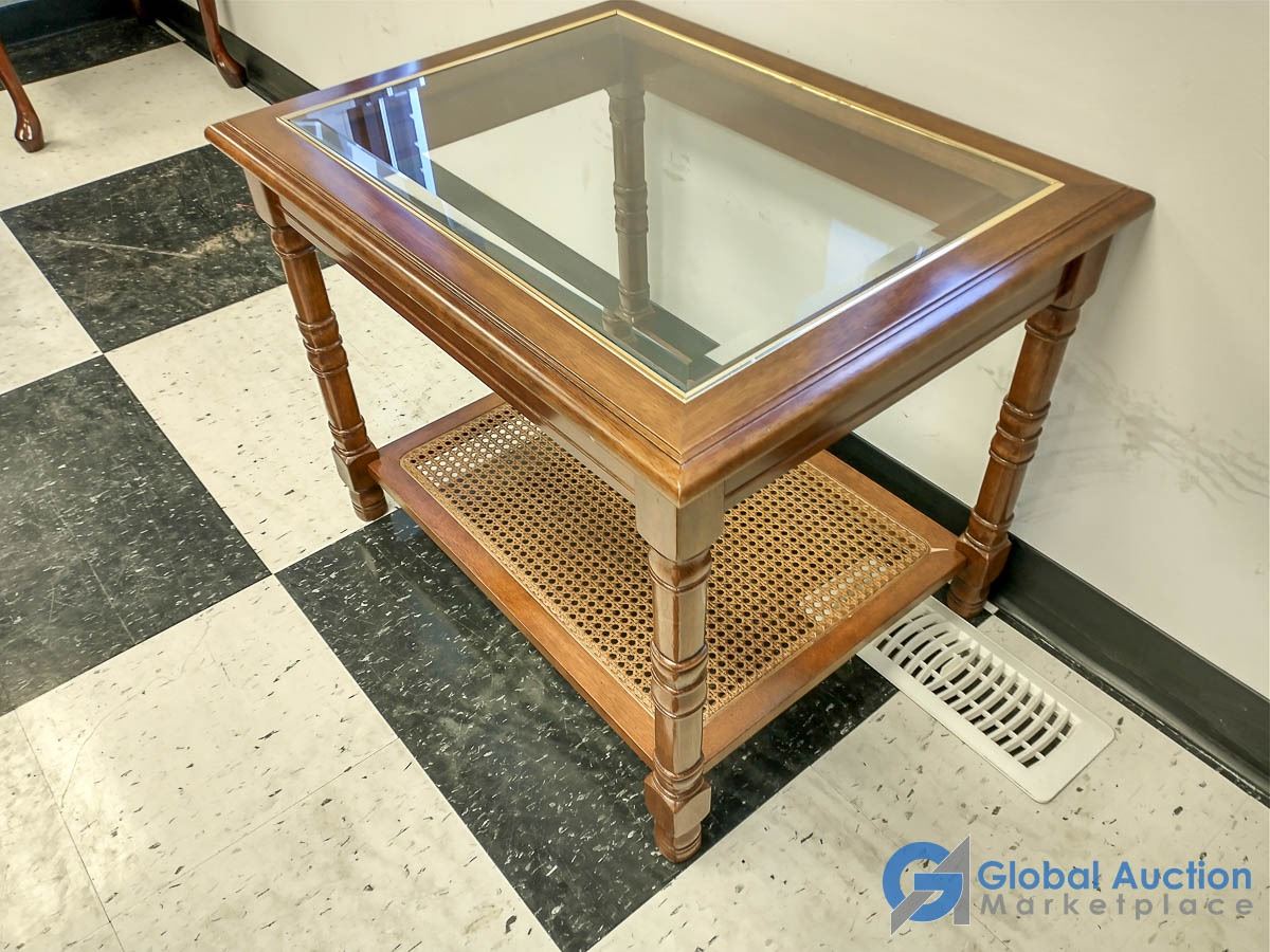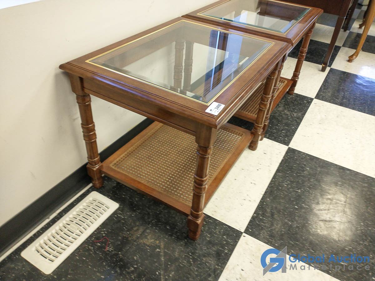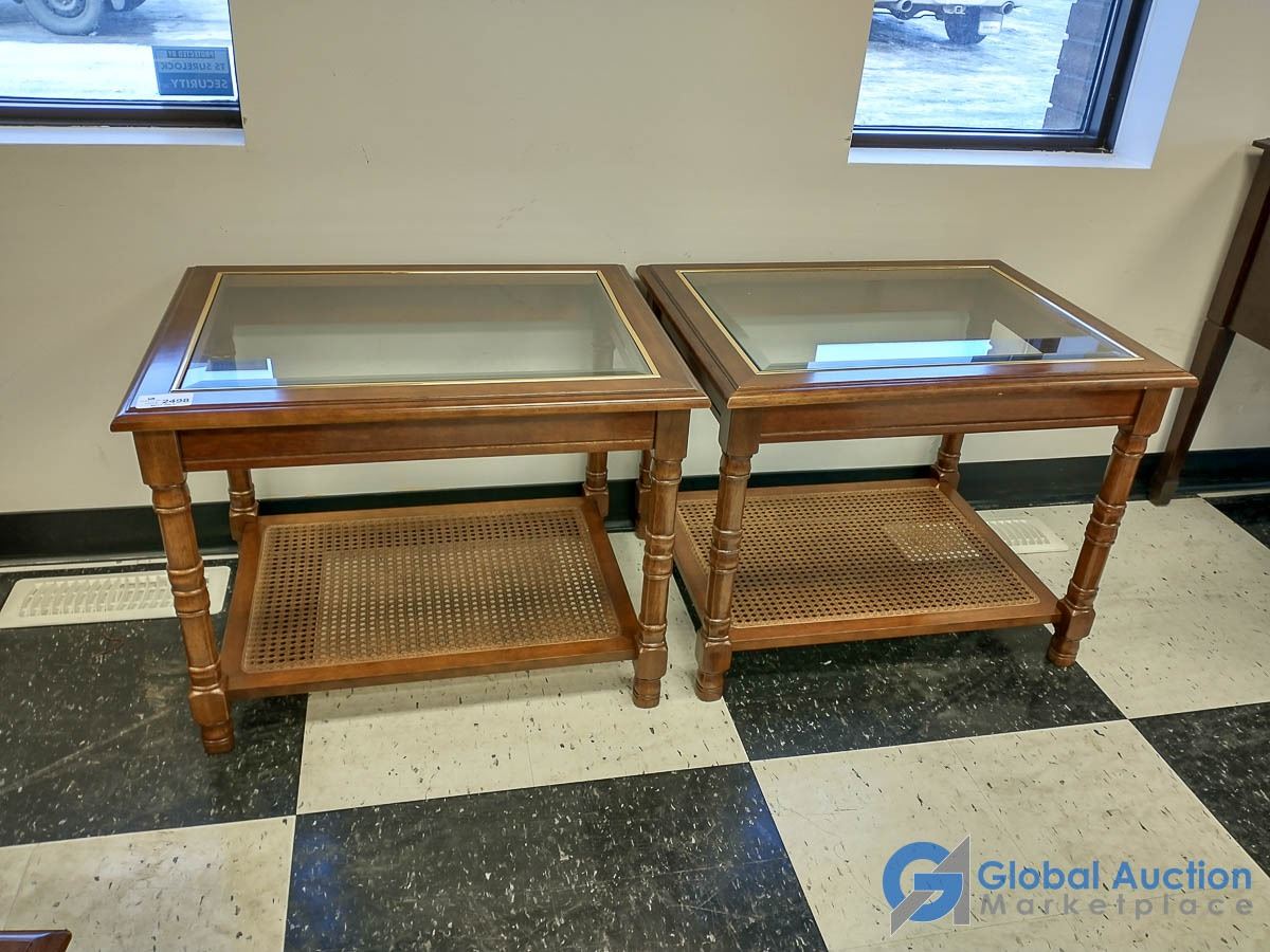 (2) Wood, Wicker & Glass Side Tables (BID PRICE TIMES 2)