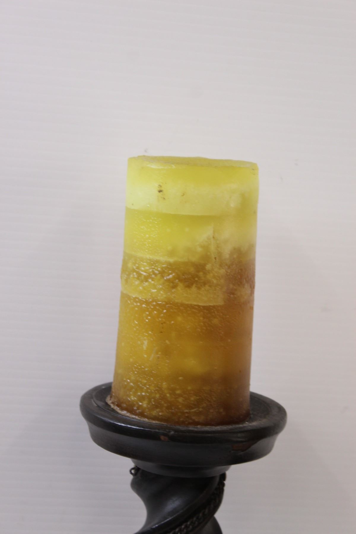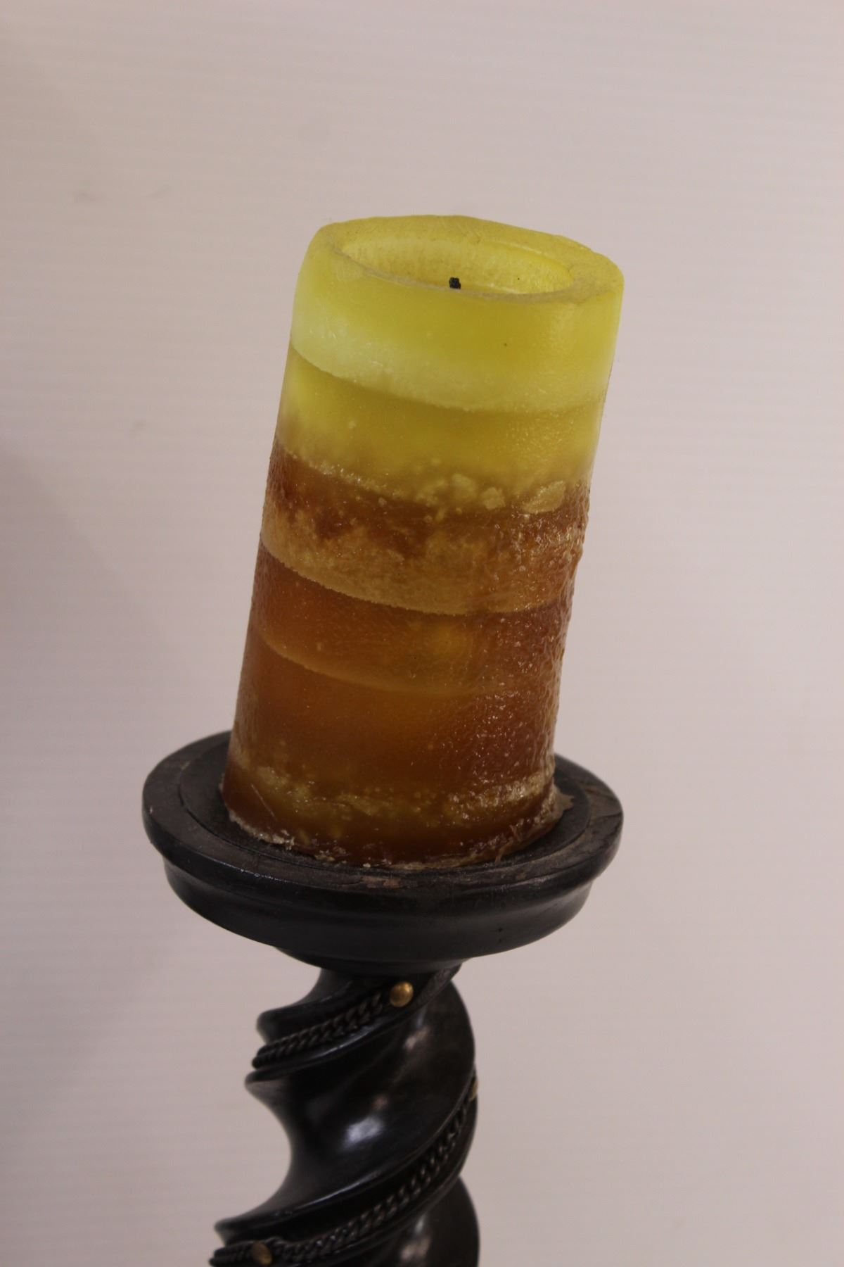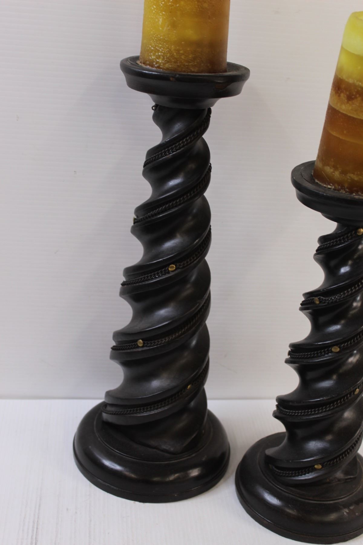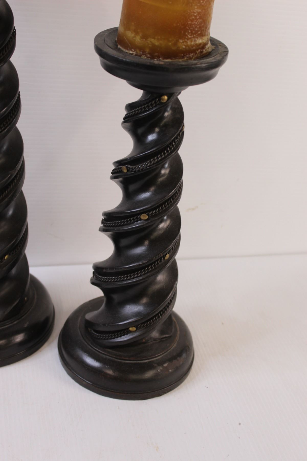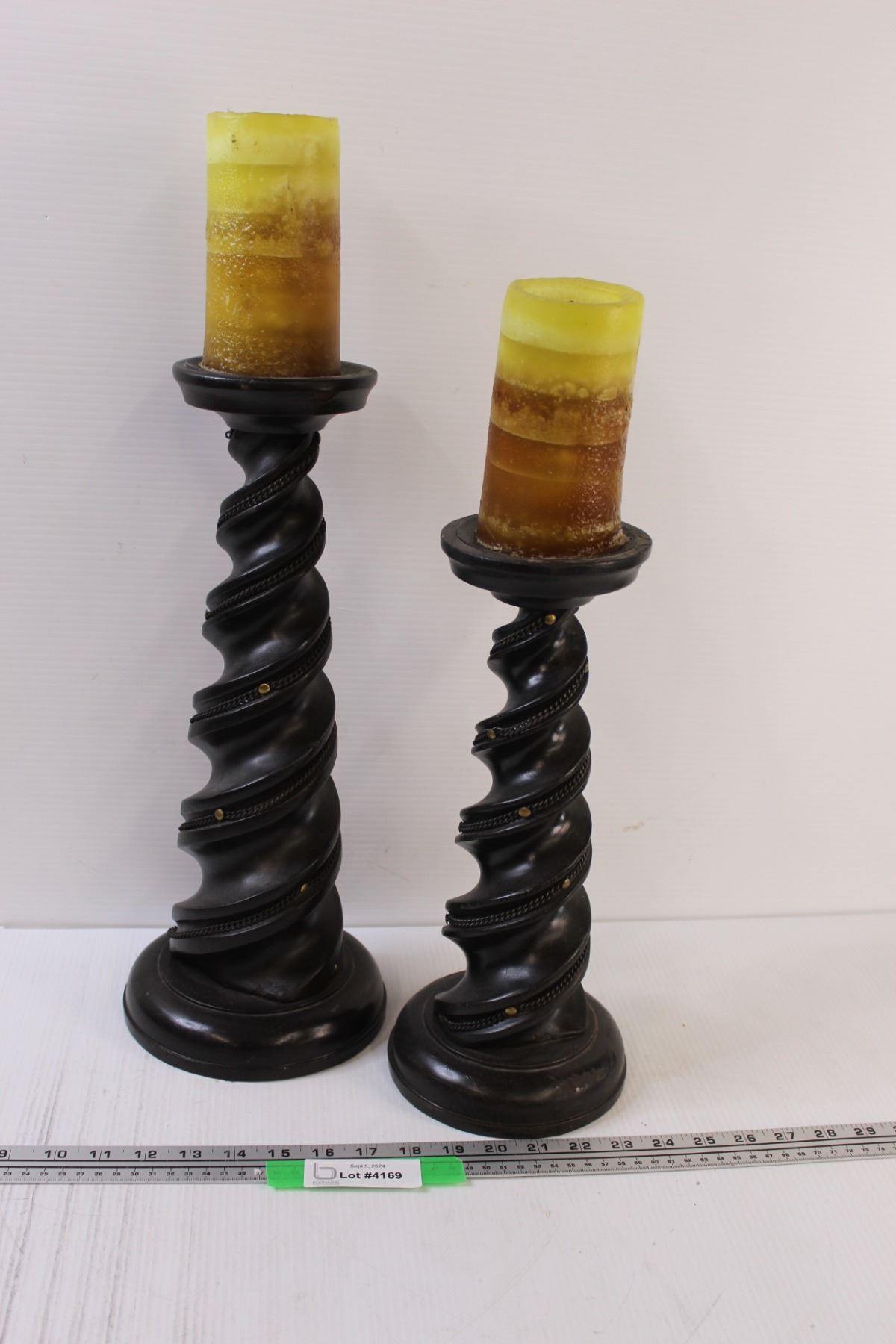 (2) Wooden Candle Holders w/ Candles - 17" & 14" Tall