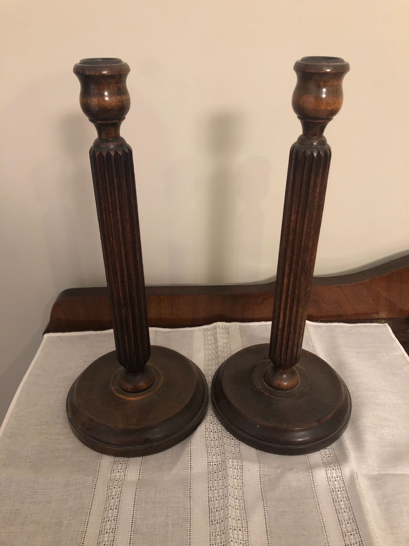 2 wooden candle sticks 12.5" high