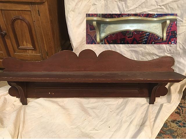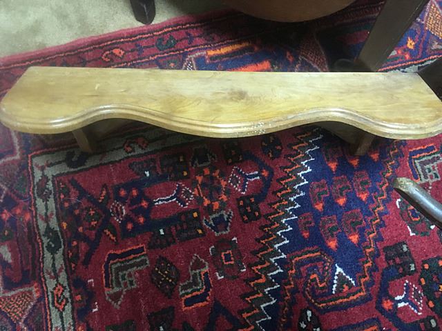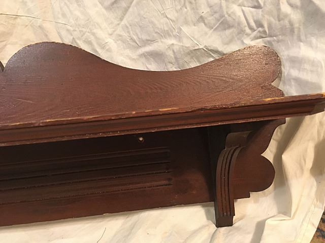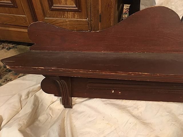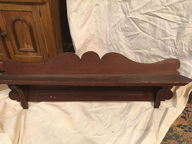 2 Wooden clock shelves, the larger one measures 42" wide x 13" high.