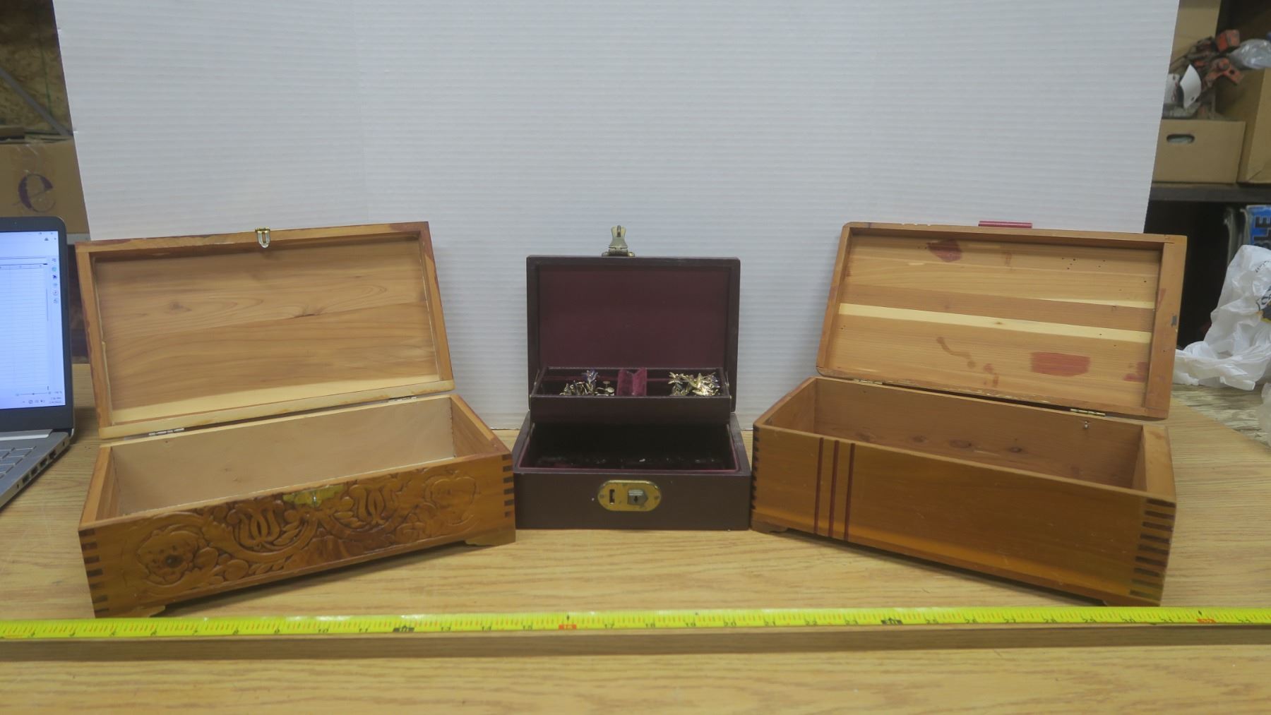 2 Wooden Decorative Boxes and 1 Jewelry Box