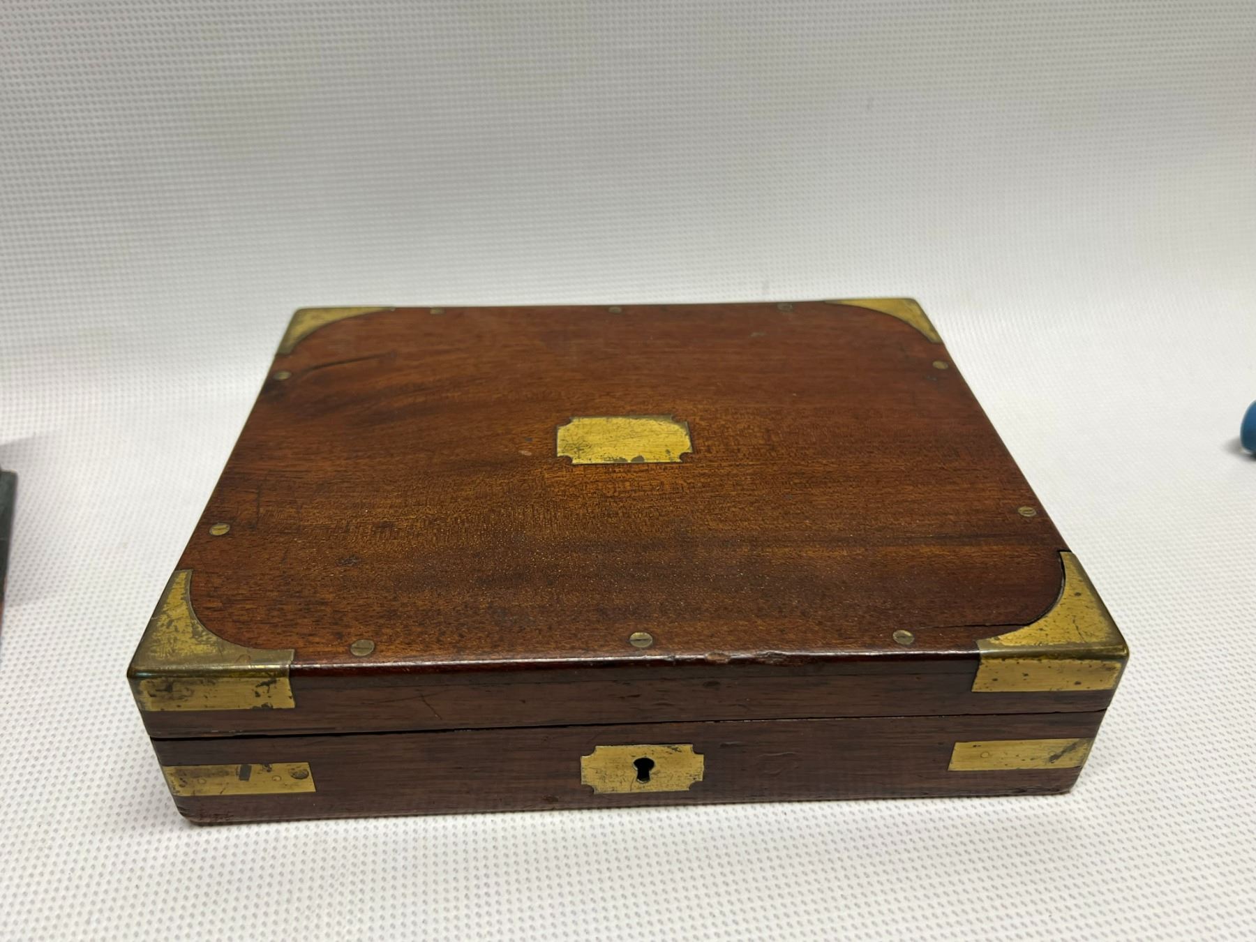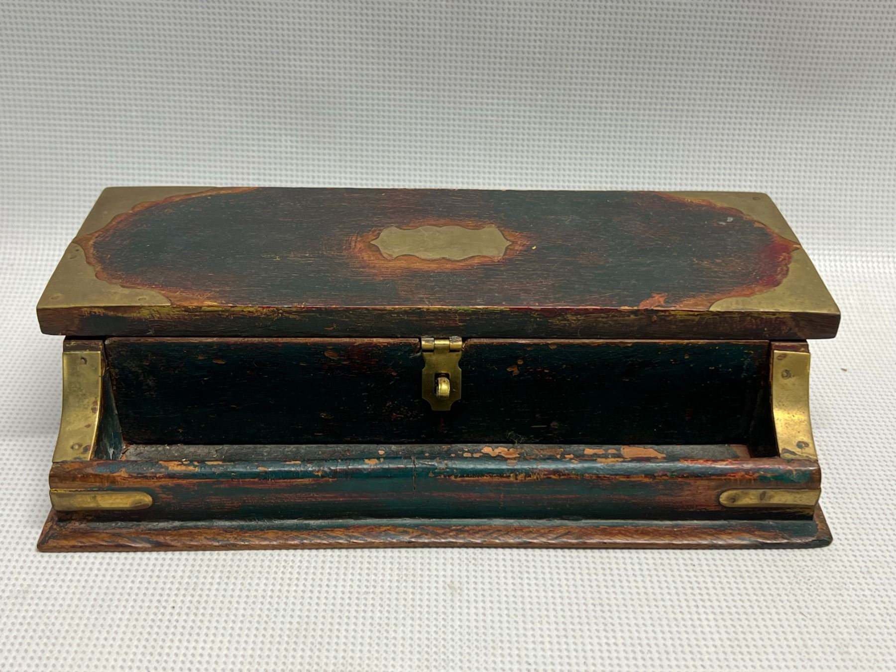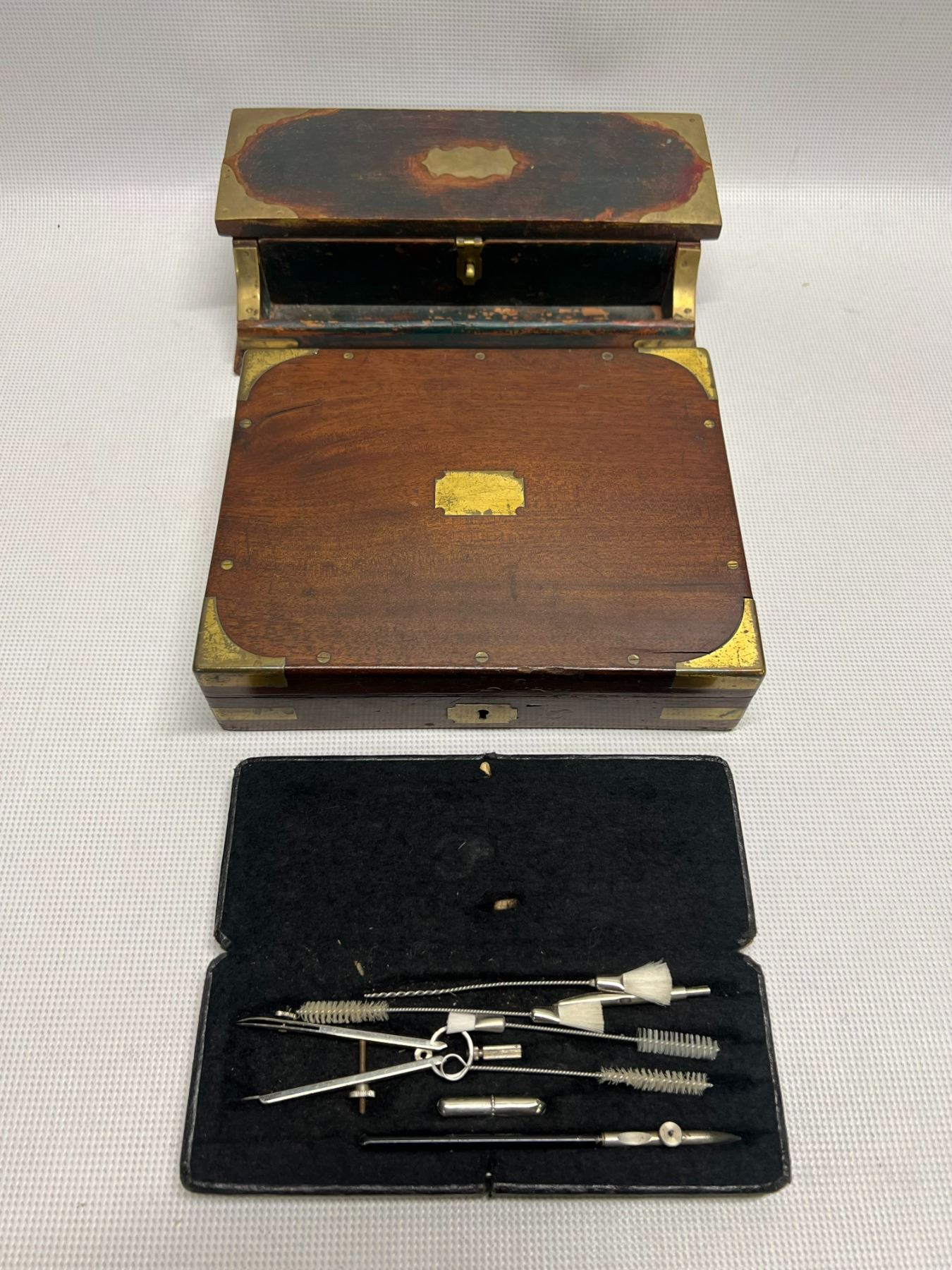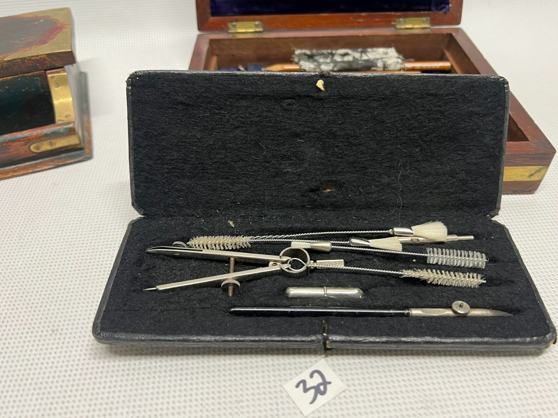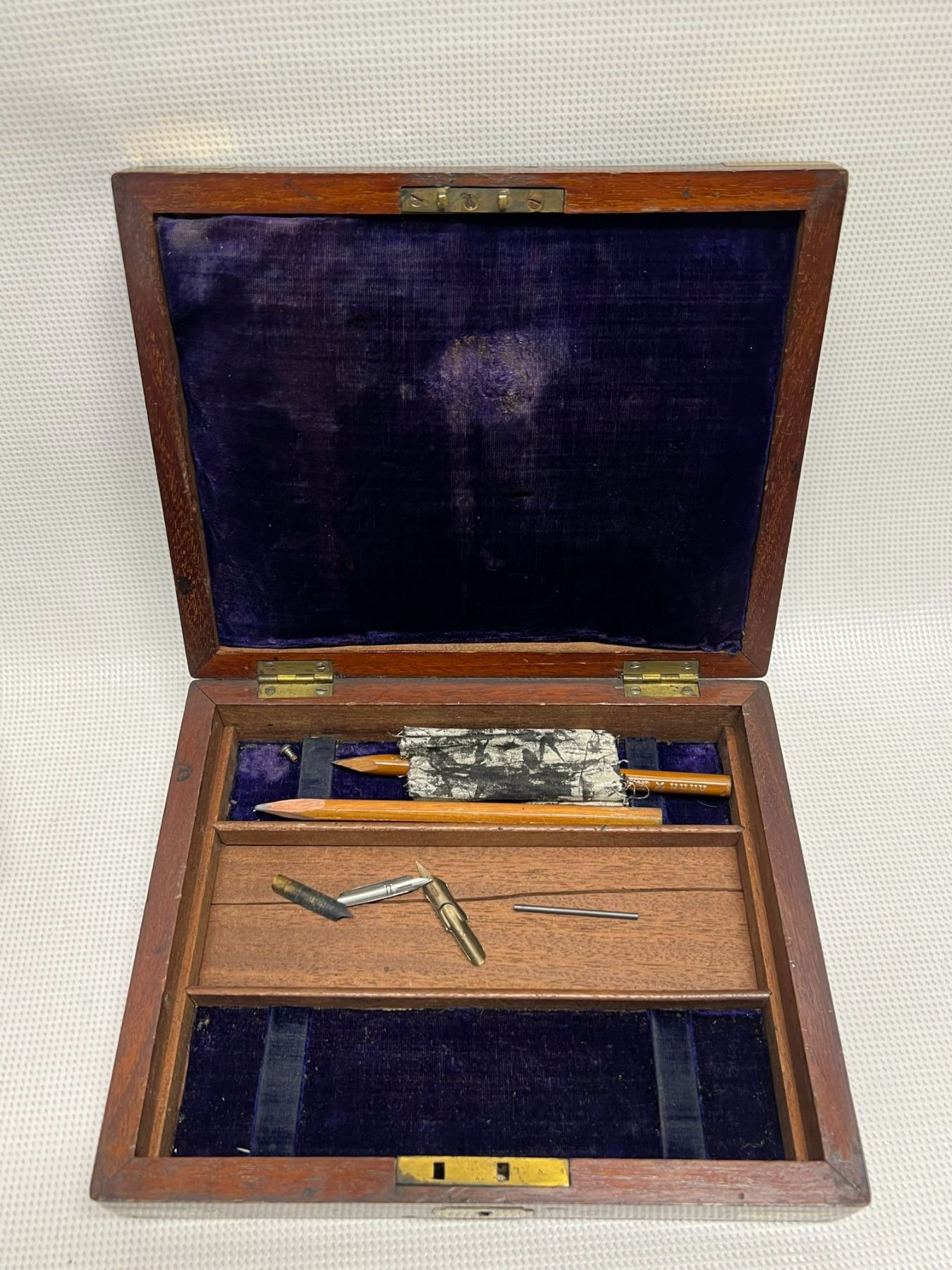 2 Wooden Pen Holders / Desk Organizer Boxes & Instrument Set (largest approx: 6.25 x 8" )