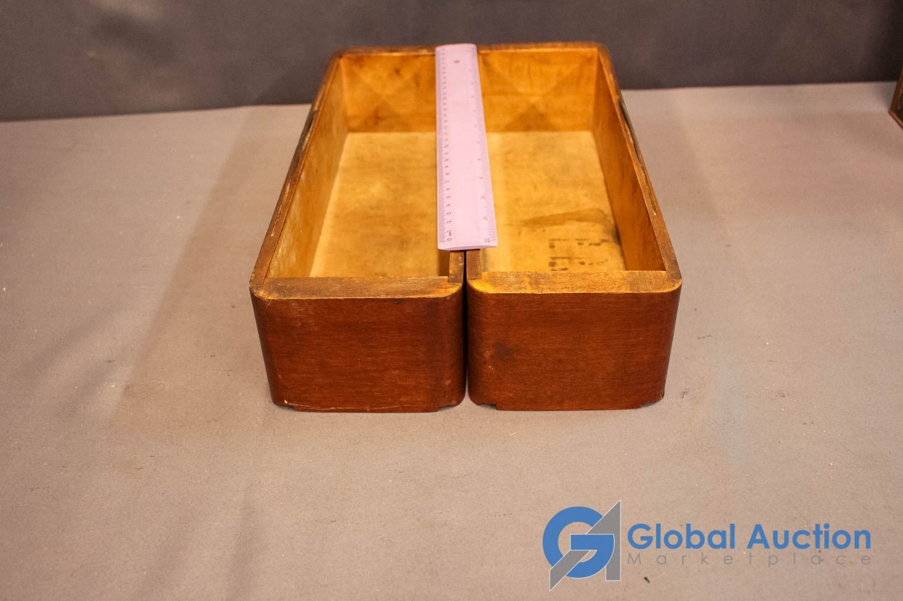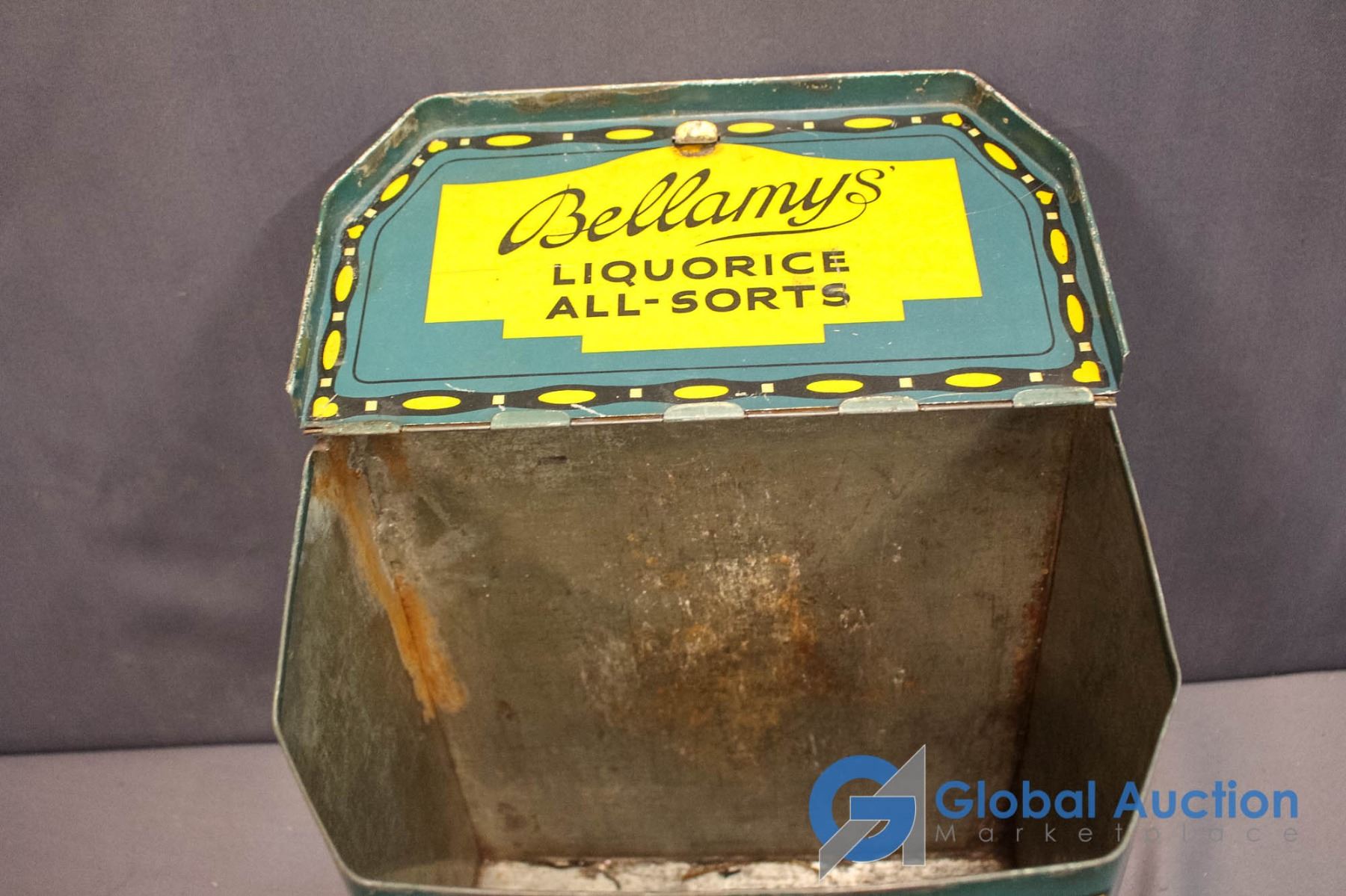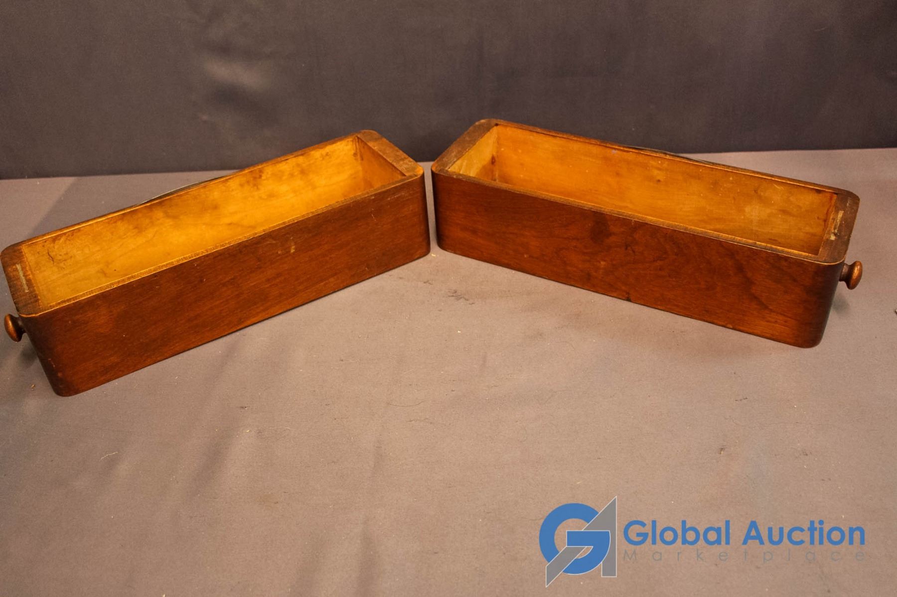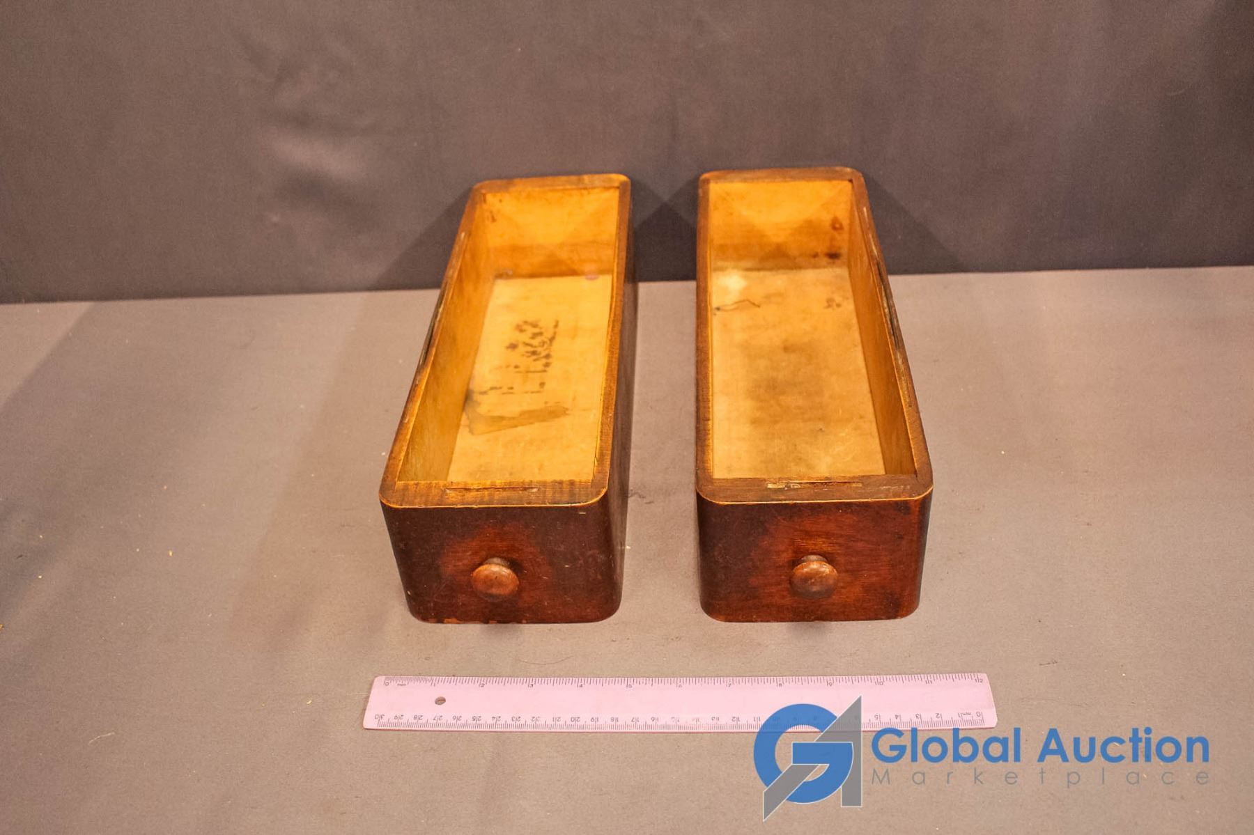 (2) Wooden Sewing Machine Drawers & Vintage Bellamy's Liquorice All-Sorts Tin with added latch