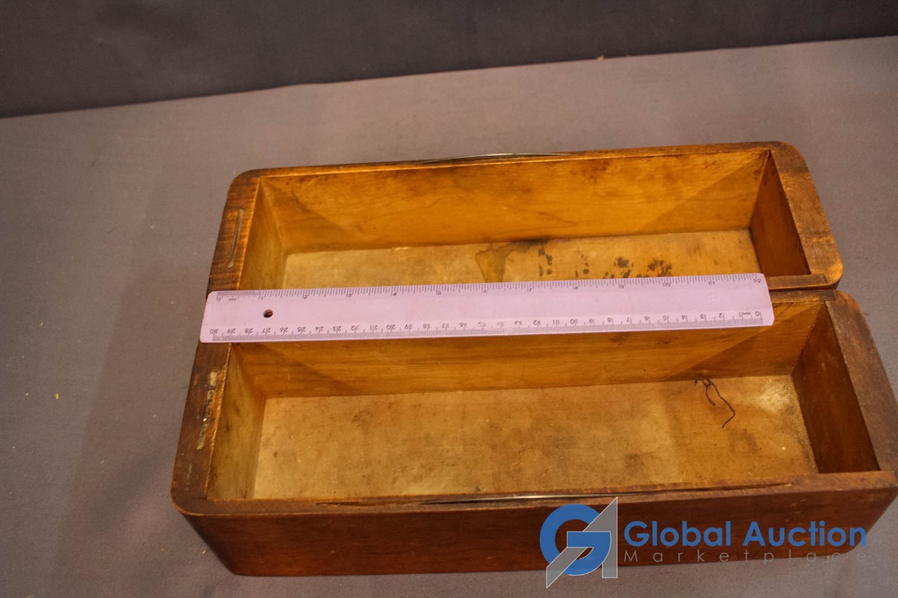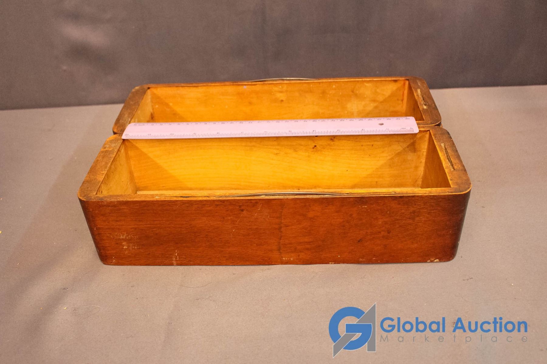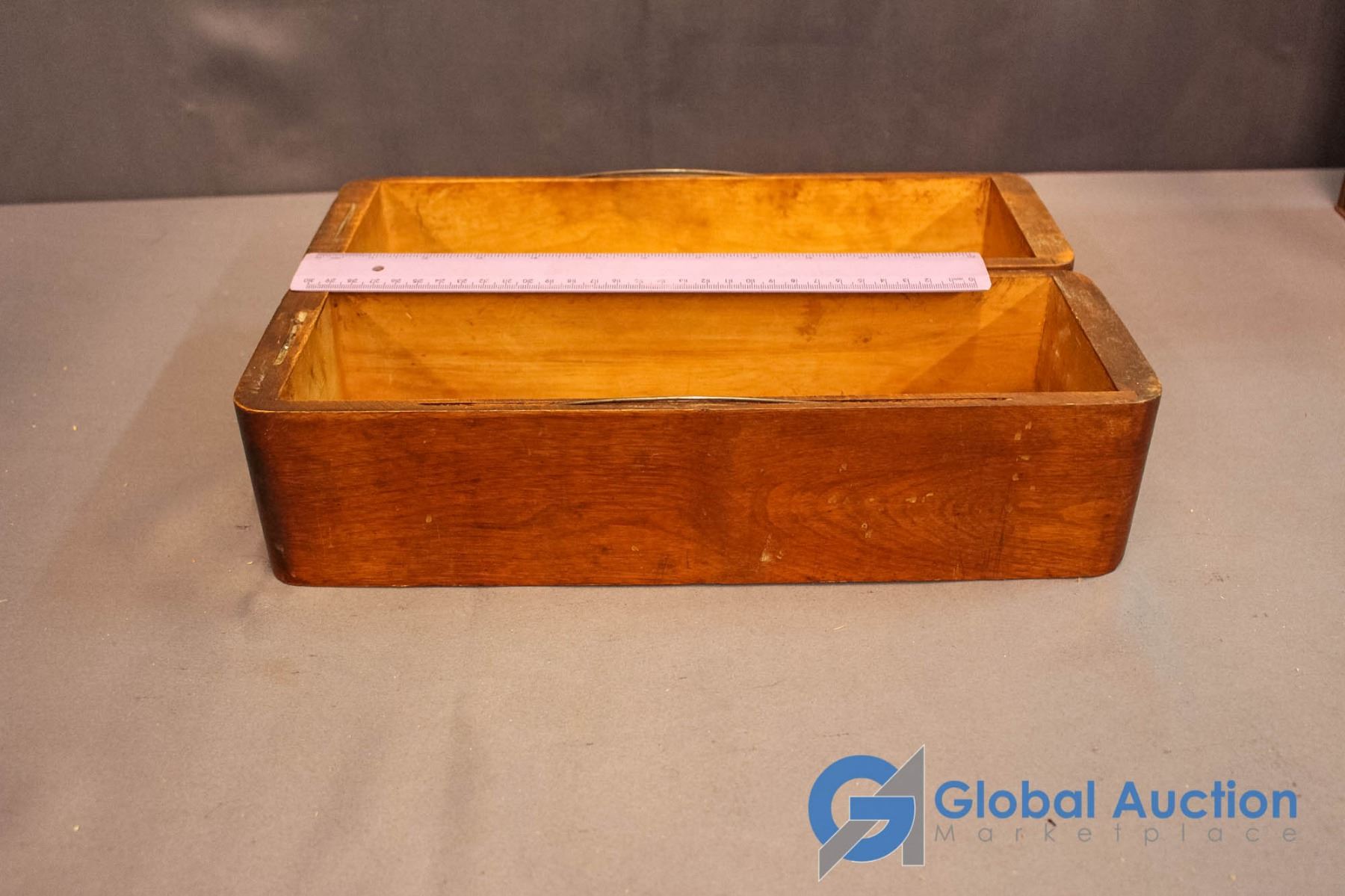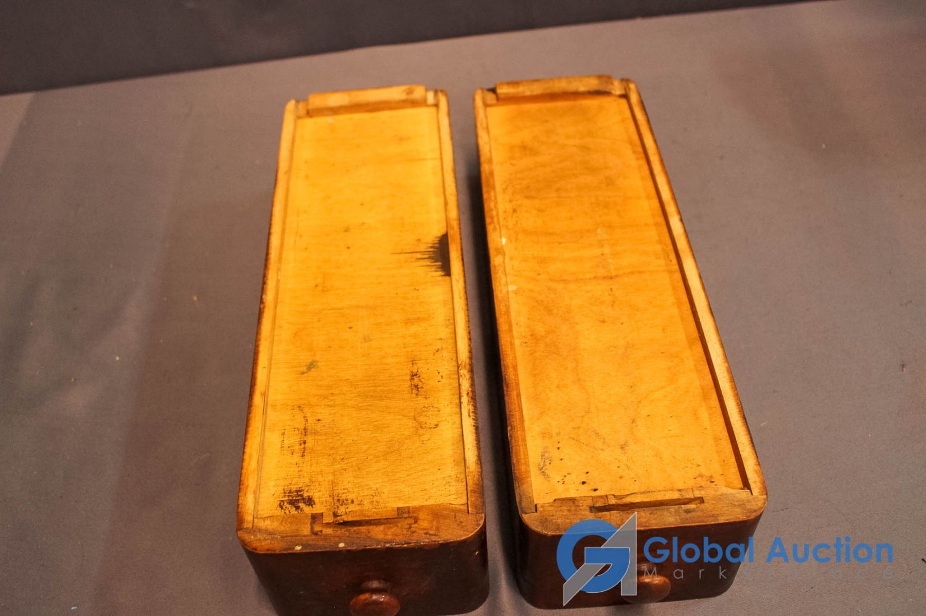 (2) Wooden Sewing Machine Drawers & Vintage Bellamy's Liquorice All-Sorts Tin with added latch