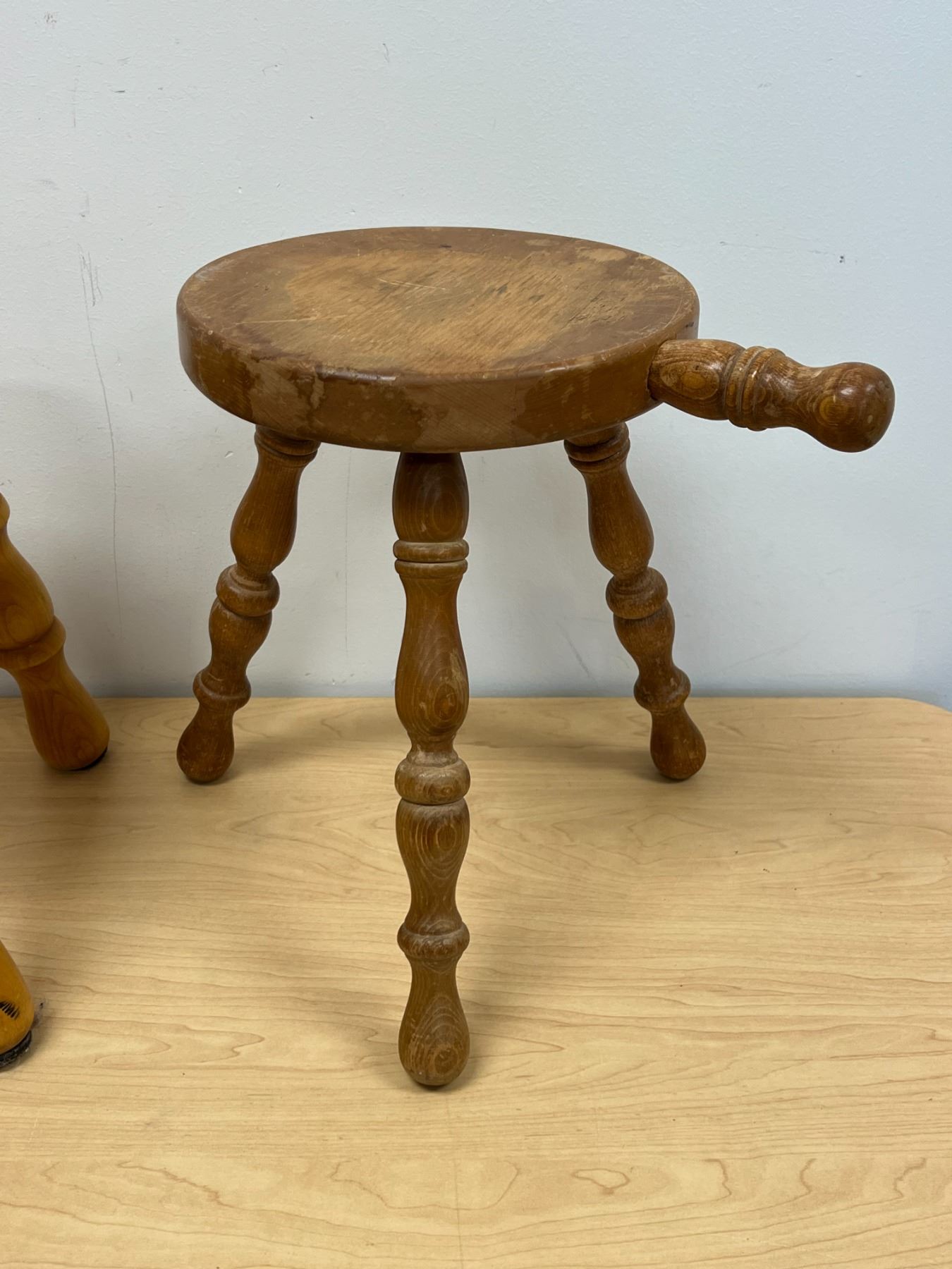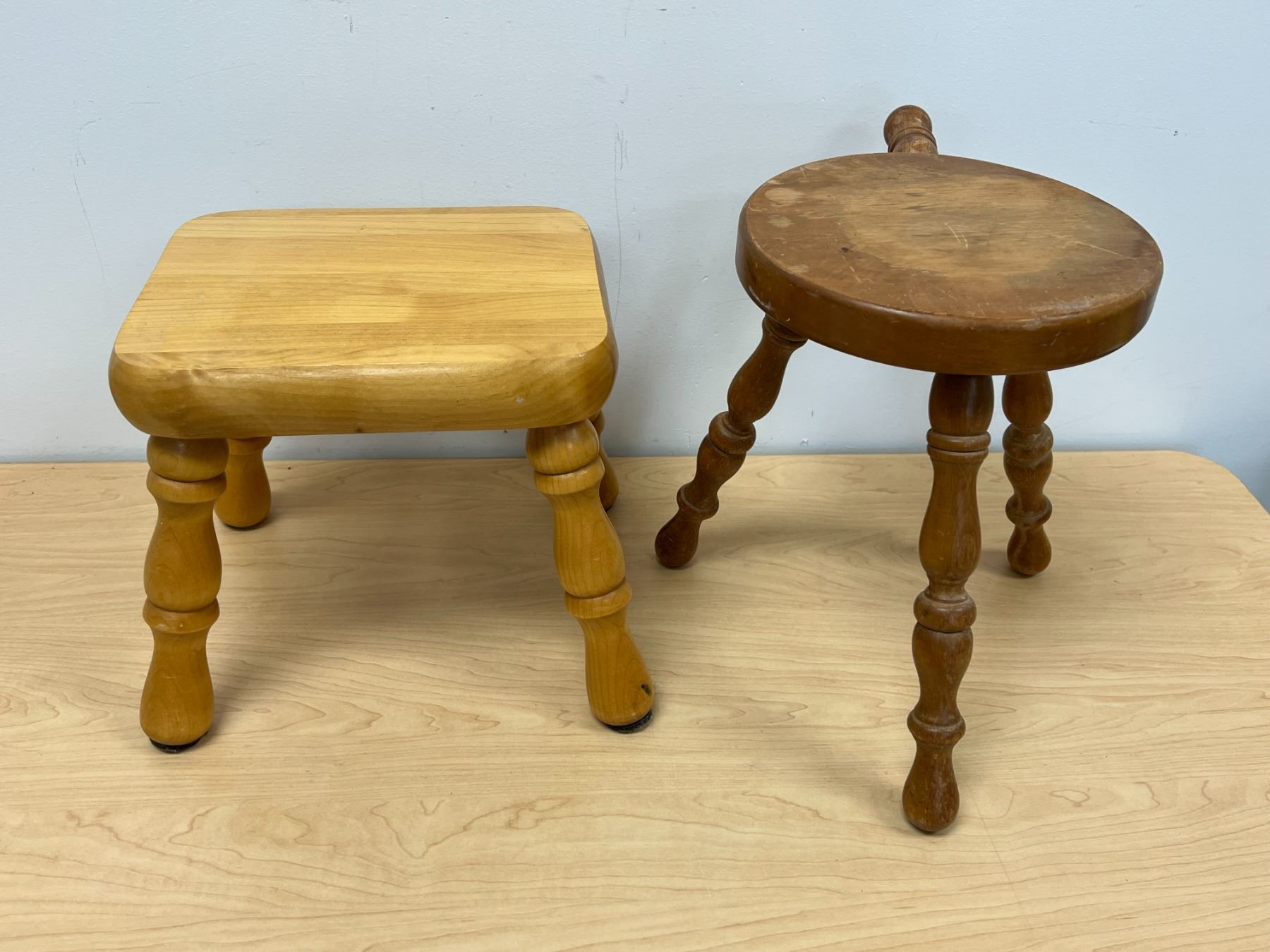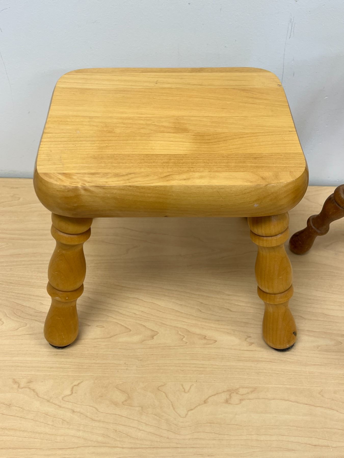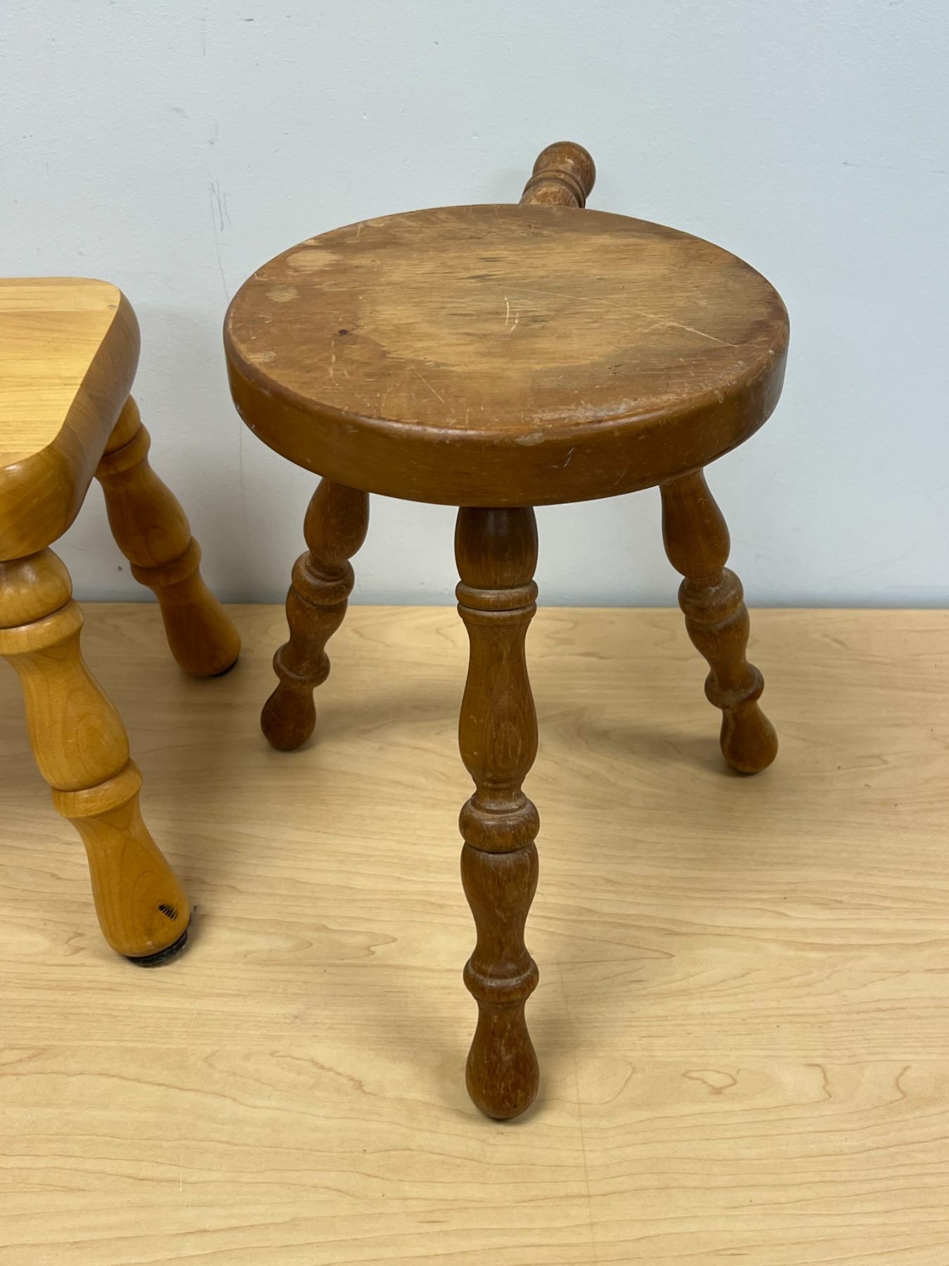 2 Wooden Stools / Plant Stands (round one approx: 9"W 12.75"T)