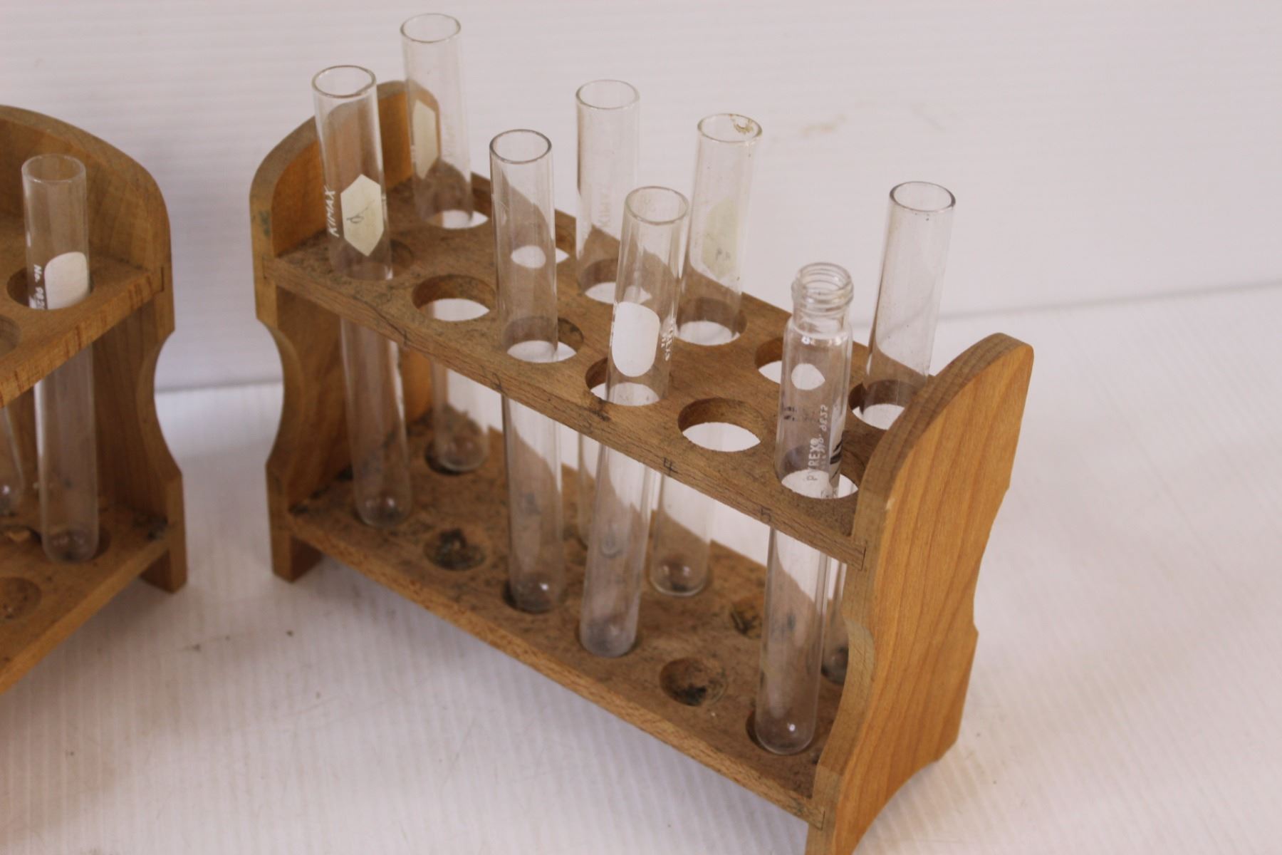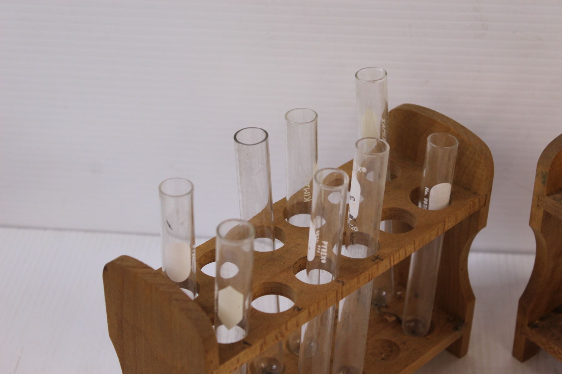 (2) Wooden Test Tubes Holders w/Glass Test Tubes (Not full set)