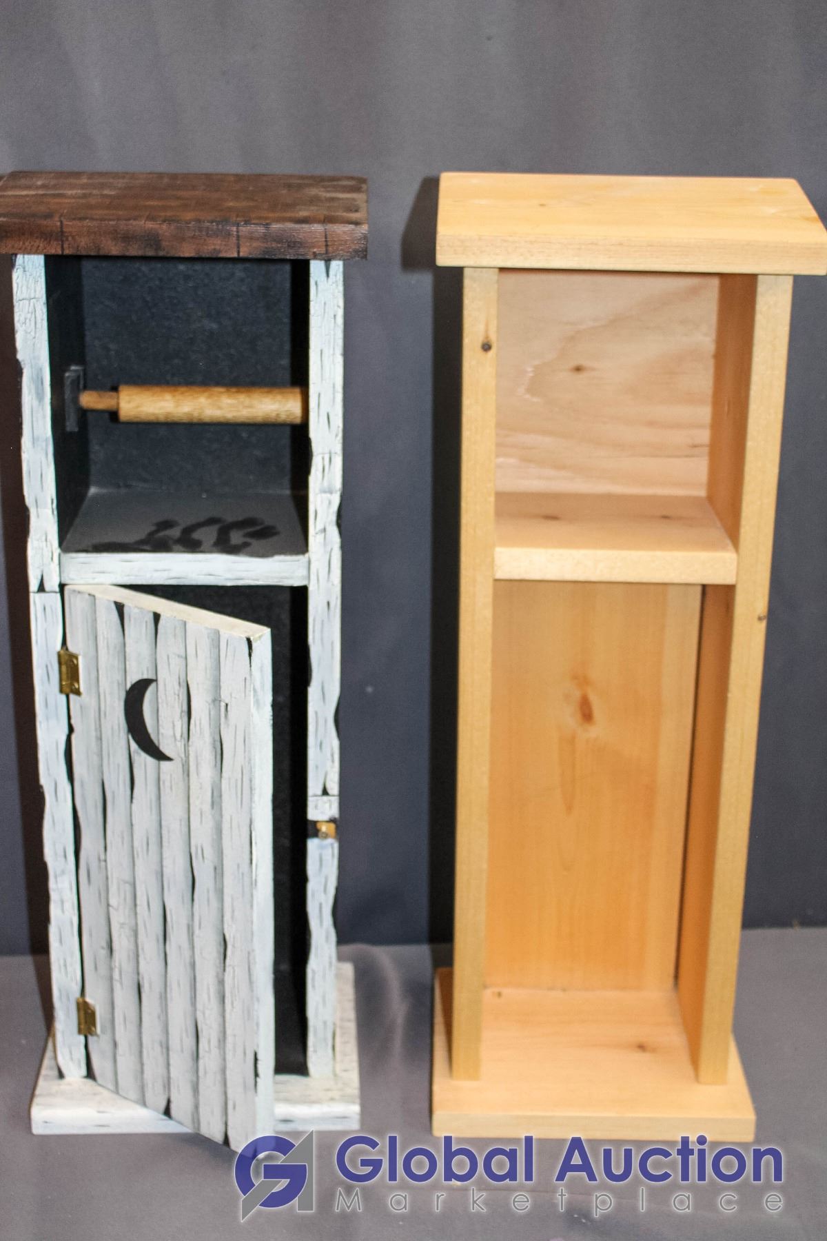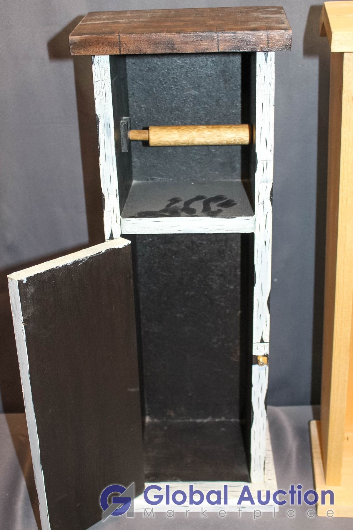 (2) Wooden Toilet Paper Caddies - 1 Hand Painted, 1 Unpainted