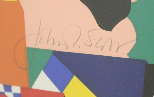 One New Orleans Jazz & Heritage Festival 1993 - poster signed in plate, John Scott, approx. 32 1/2" H x 20 1/2" W sight, 42" H x 30" W framed; one "Rainbow" Defend of the America Cup 1934-64, yachting, print, signed lower right in plate, John