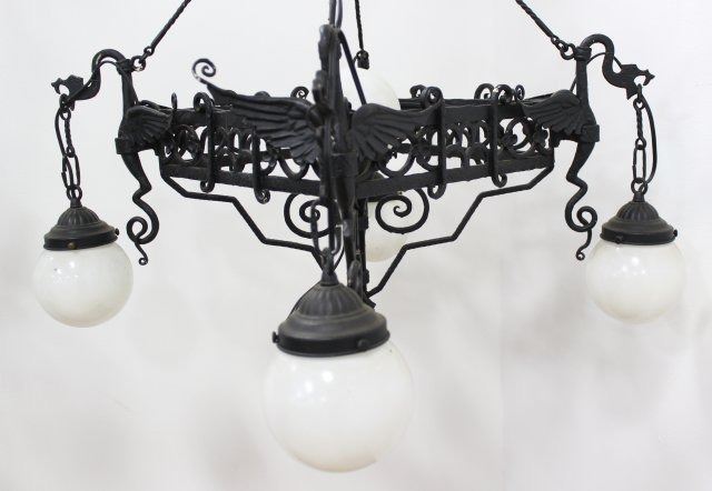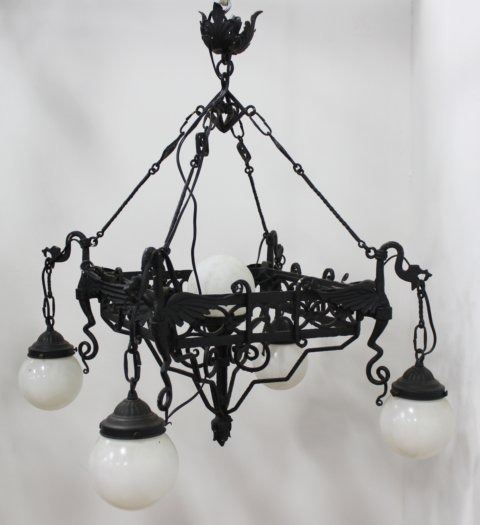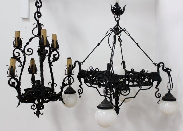 1 foliate, 1 with griffons. Larger approx. 32" H x 24" W. (08109G, SF842) 1 globe broken.