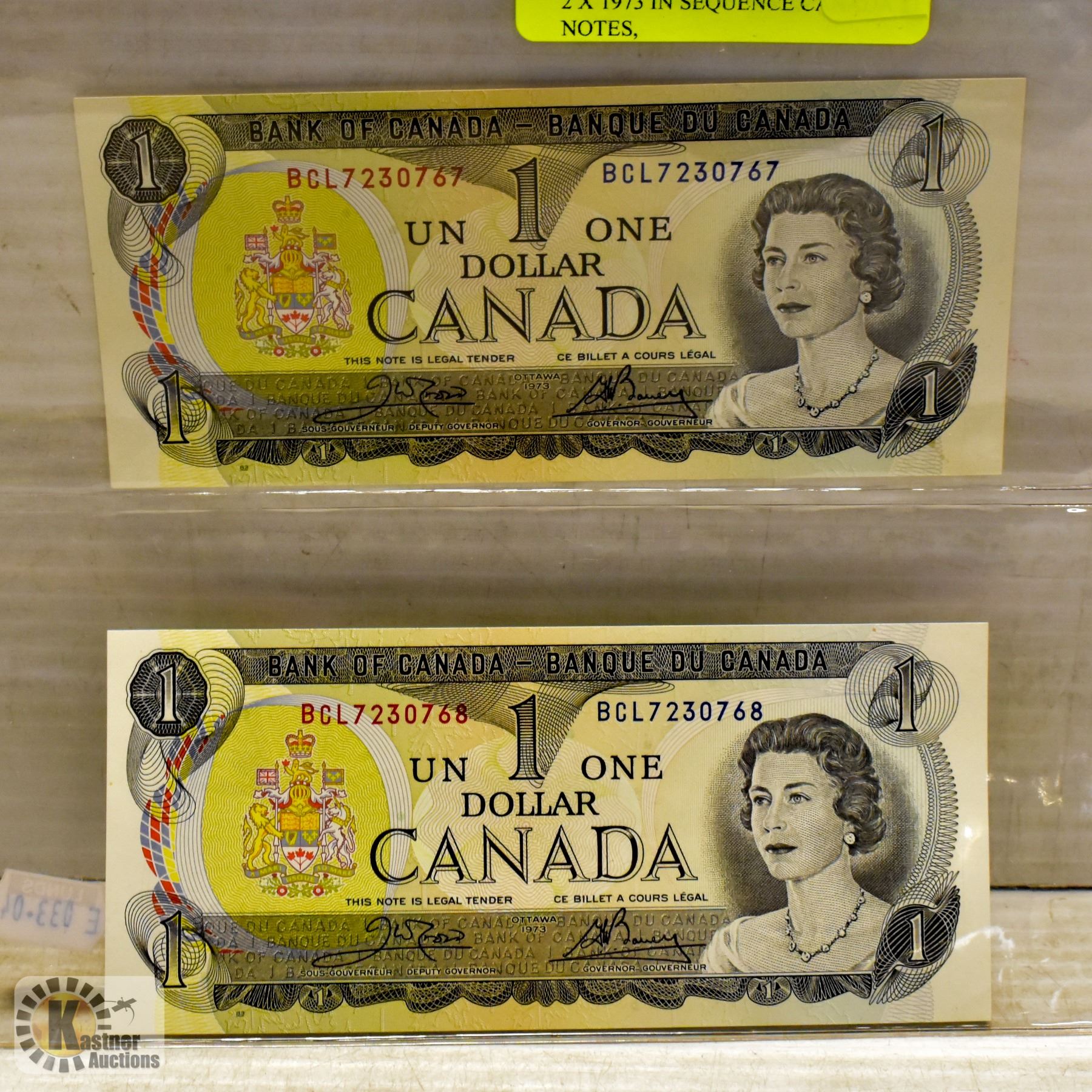 2 X 1973 IN SEQUENCE CANADA $1 NOTES,
