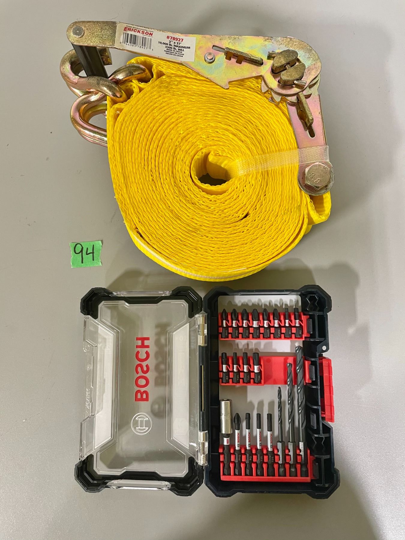 2" X 27' RATCHET STRAP & BOSCH BIT SET - NEW