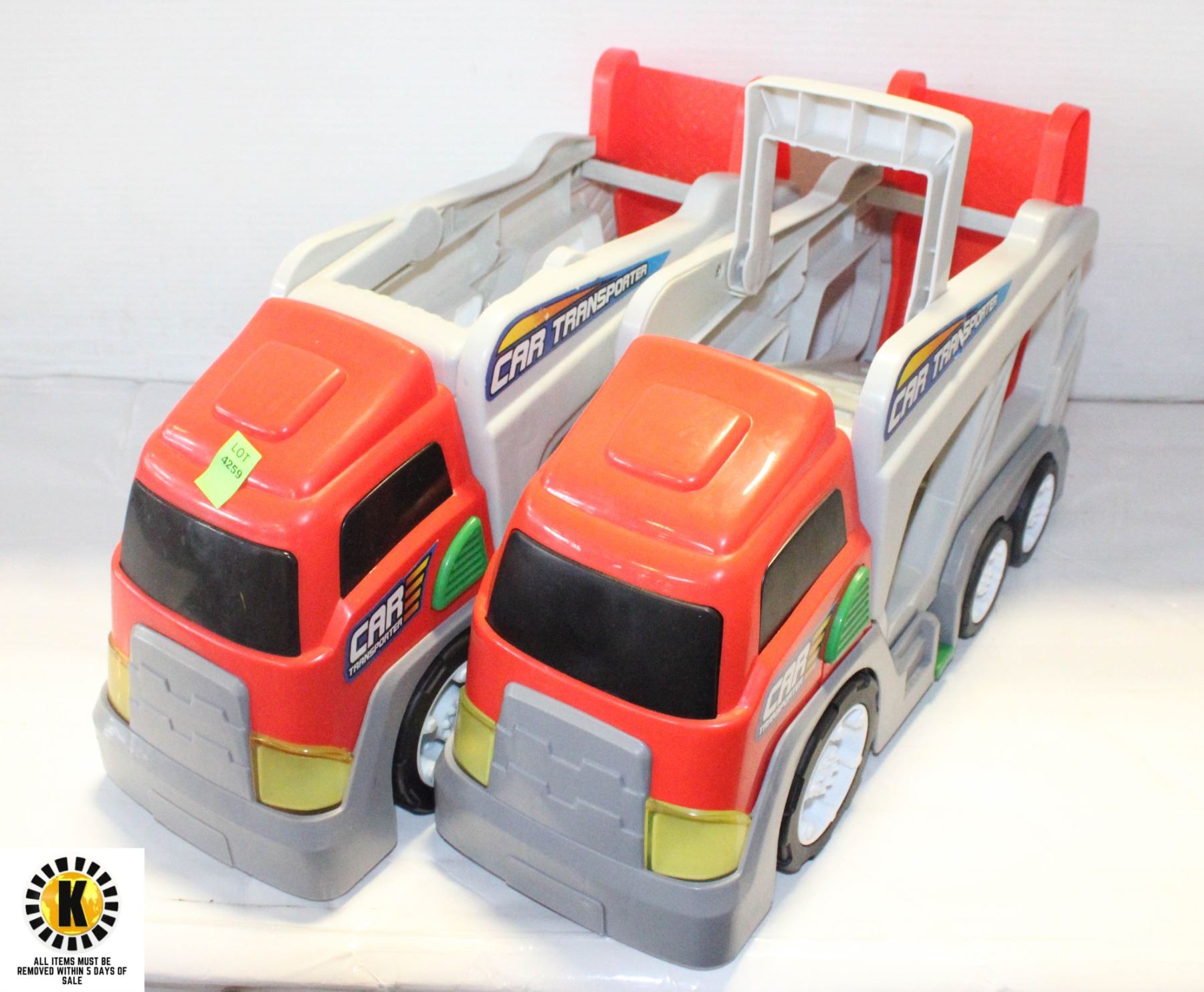 2 X ANIMATED CAR TRANSPORTER TOY TRUCKS