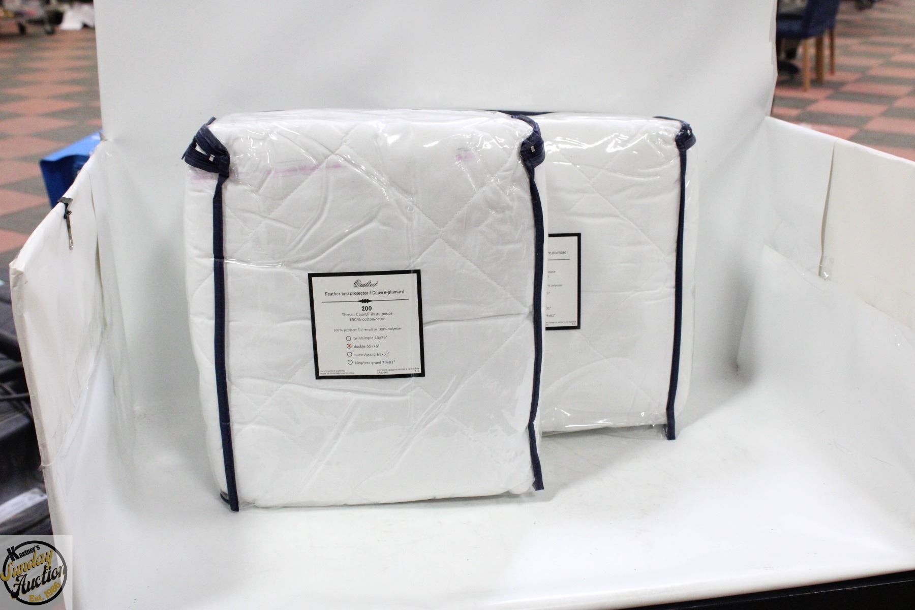 2 X DOUBLE SIZE QUILTED FEATHER BED, PROTECTOR