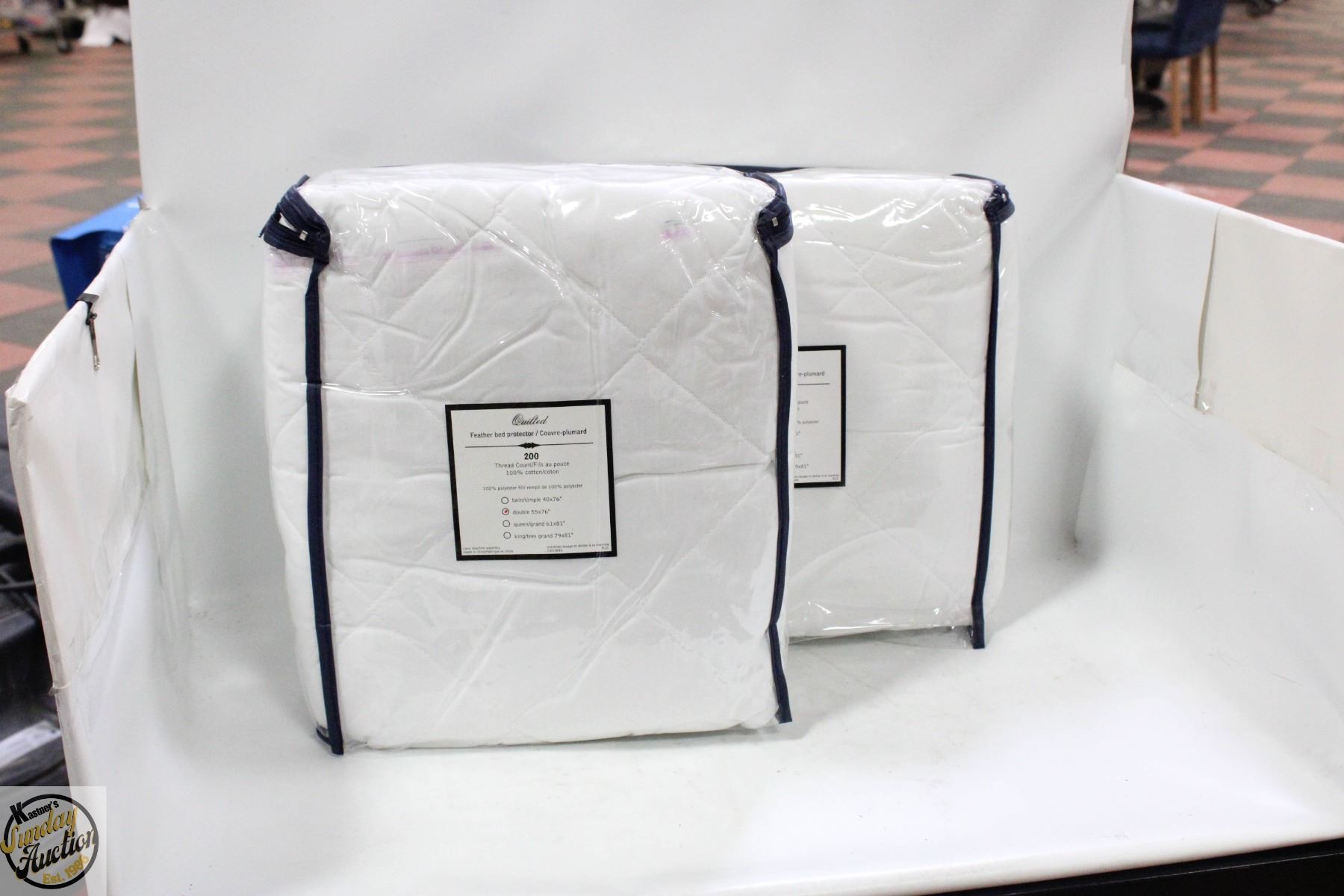 2 X DOUBLE SIZE QUILTED FEATHER BED, PROTECTOR