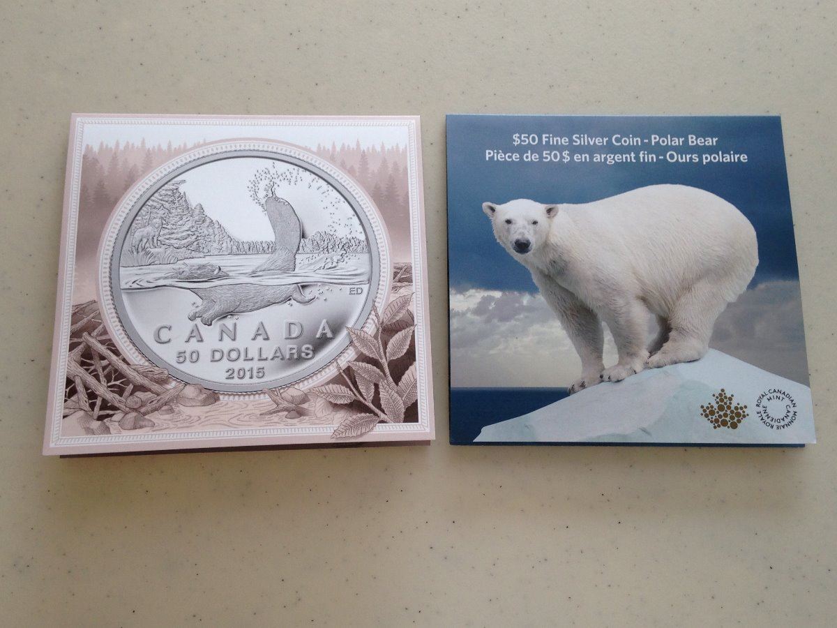 2 fine silver 9999 $50 2014 Polar Bear and 2015 Beaver