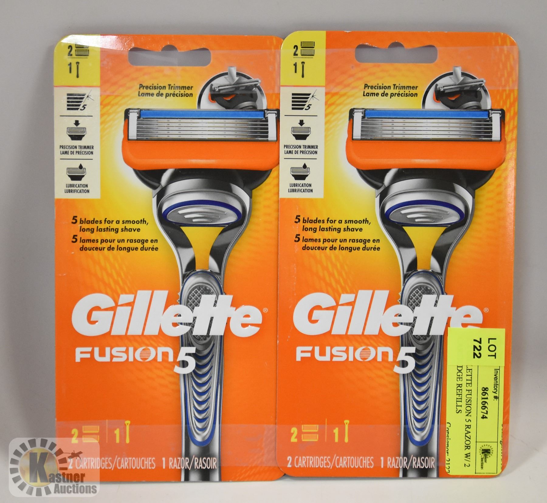 2 X GILLETTE FUSION 5 RAZOR W/ 2 CARTRIDGE REFILLS