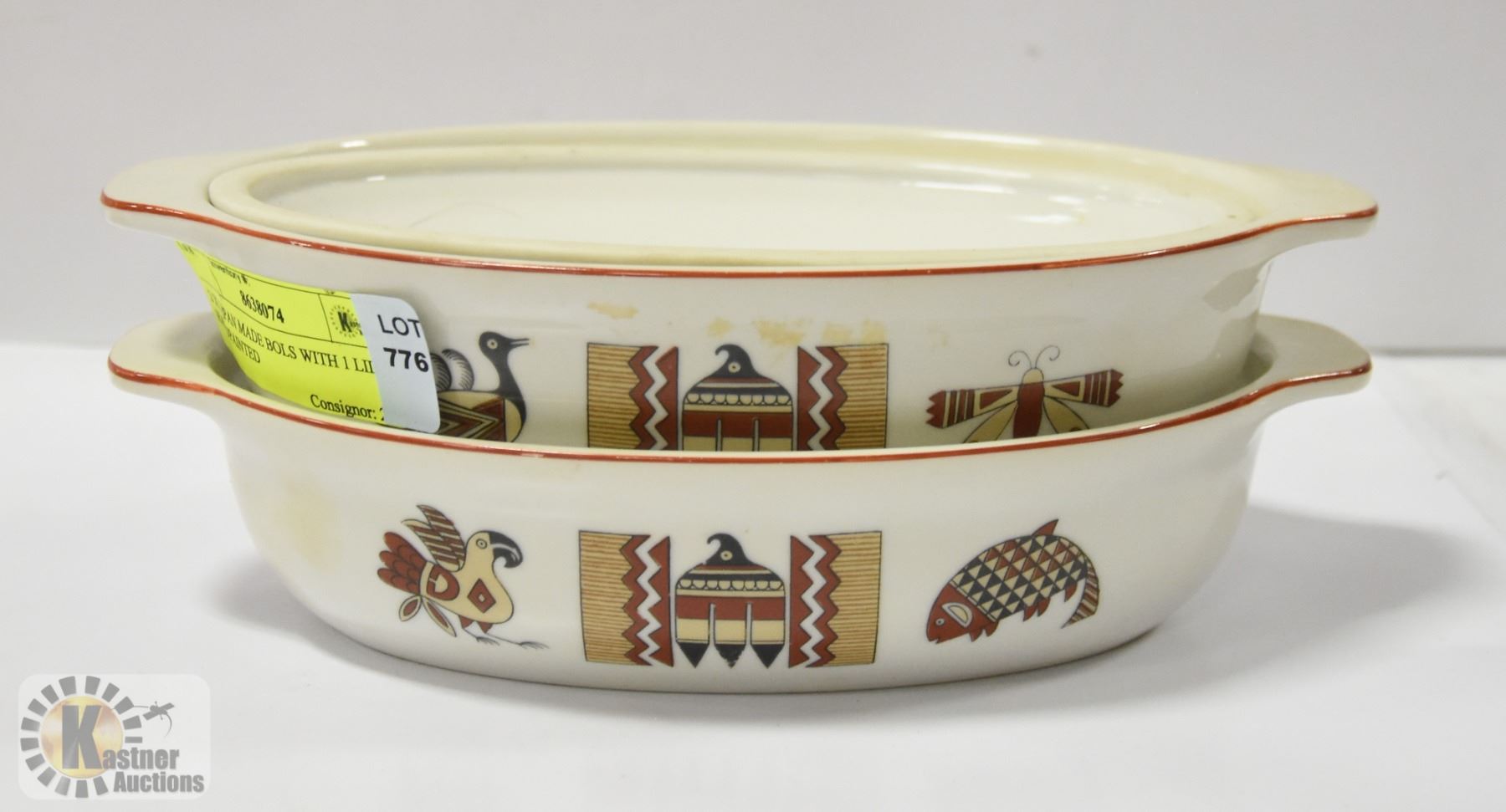 2 X JAPAN MADE BOLS WITH 1 LID HAND PAINTED