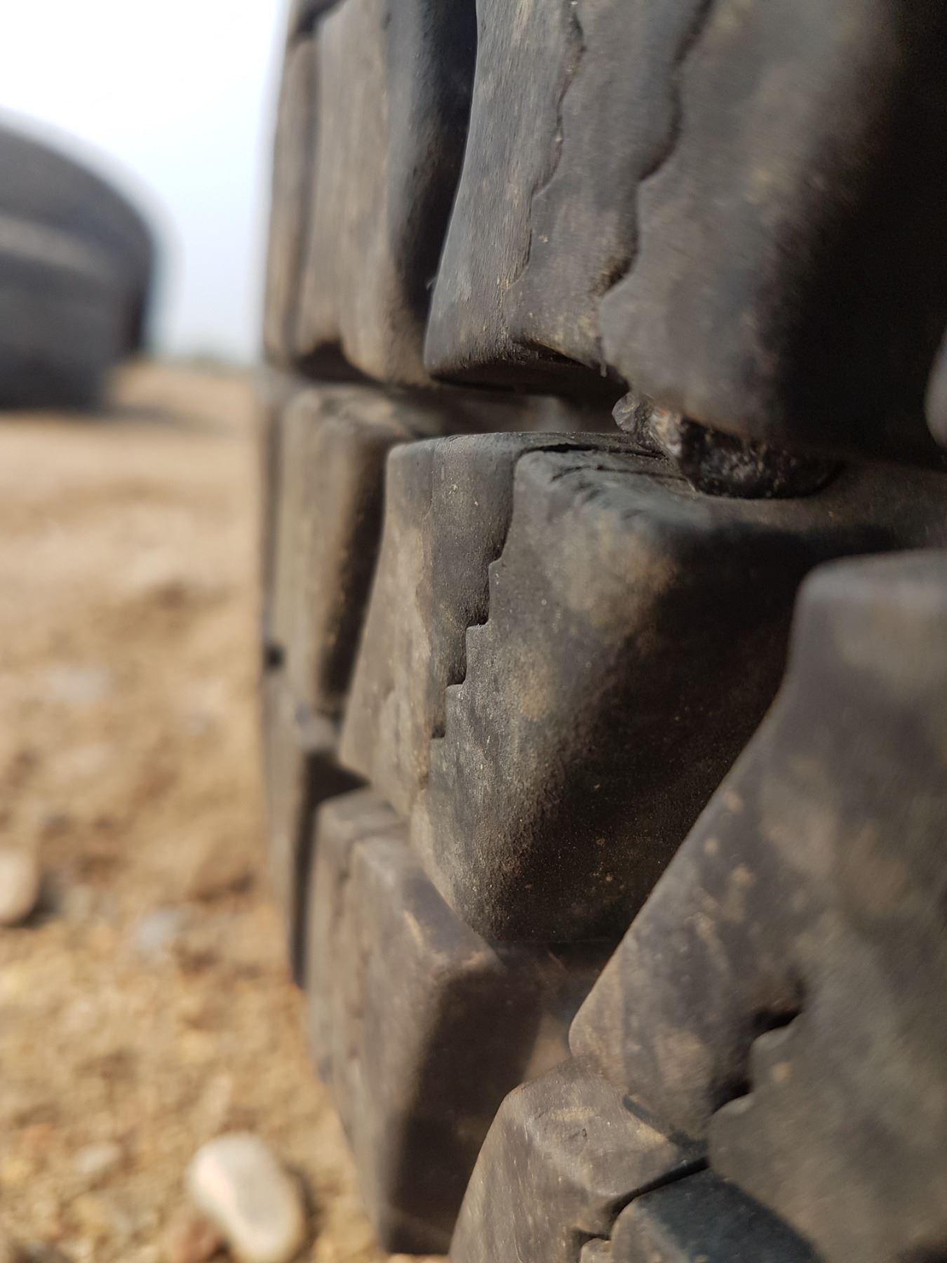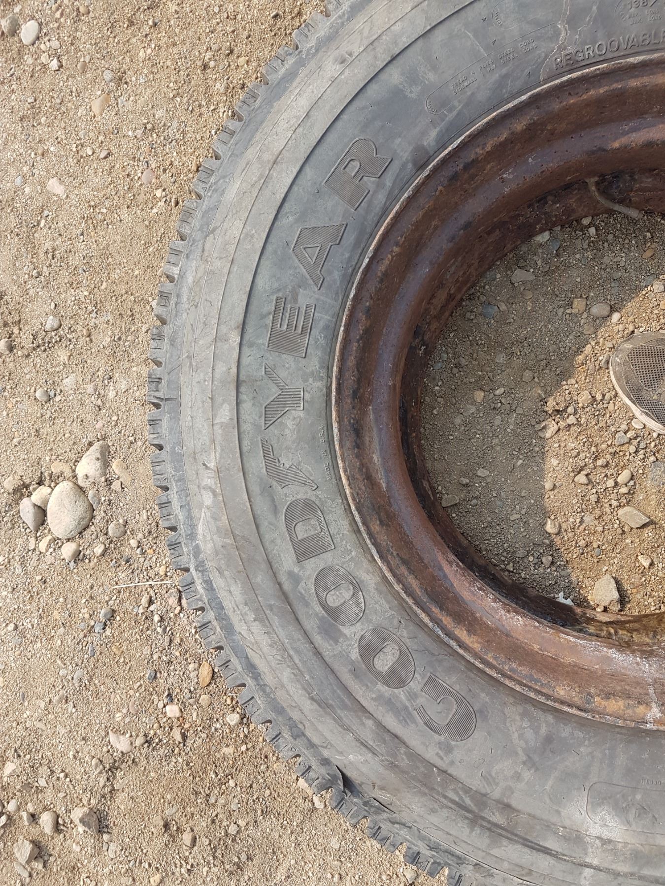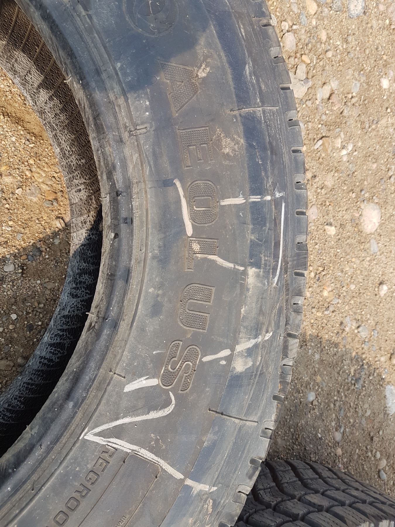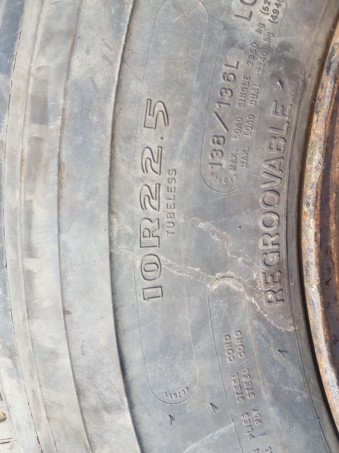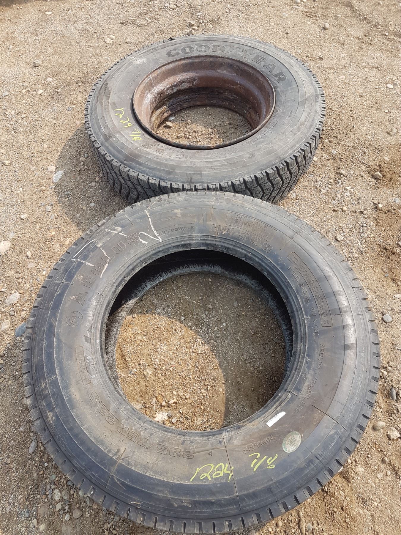 2 X Mismatched 22.5 Semi Tires One On Rim