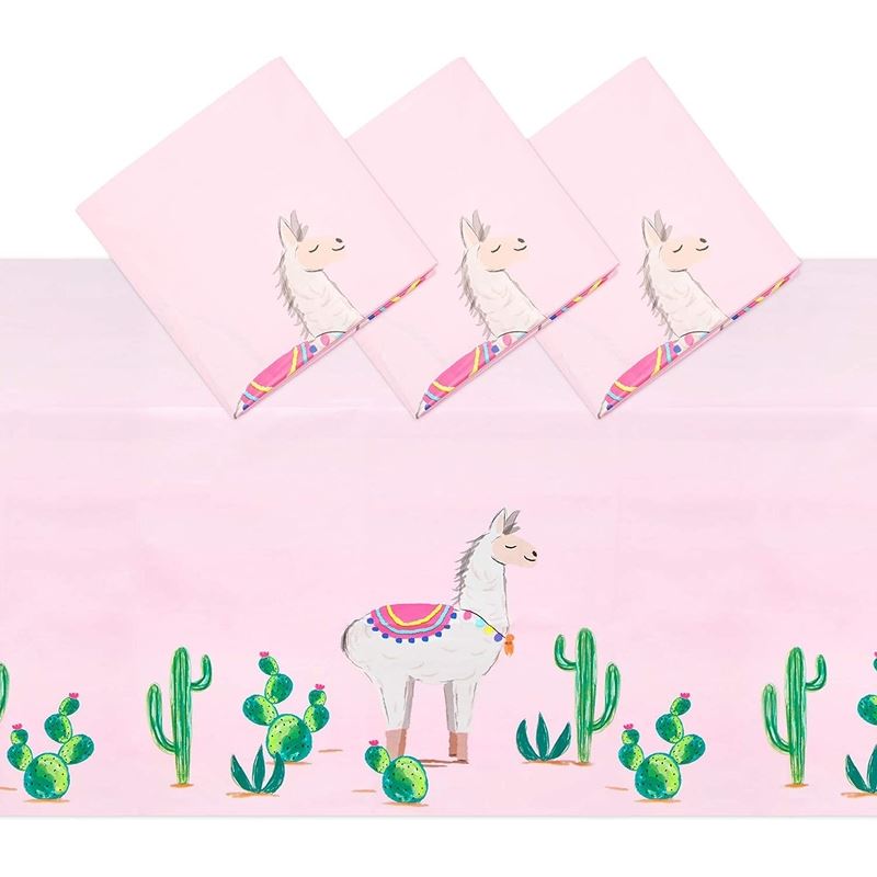 Sparkle and Bash Pink Plastic Tablecloth for Llama Birthday Party (54 x 108 in, 3 Pack) - Table Cloth - Football Tablecloth - Plastic Table Cloth Disposable