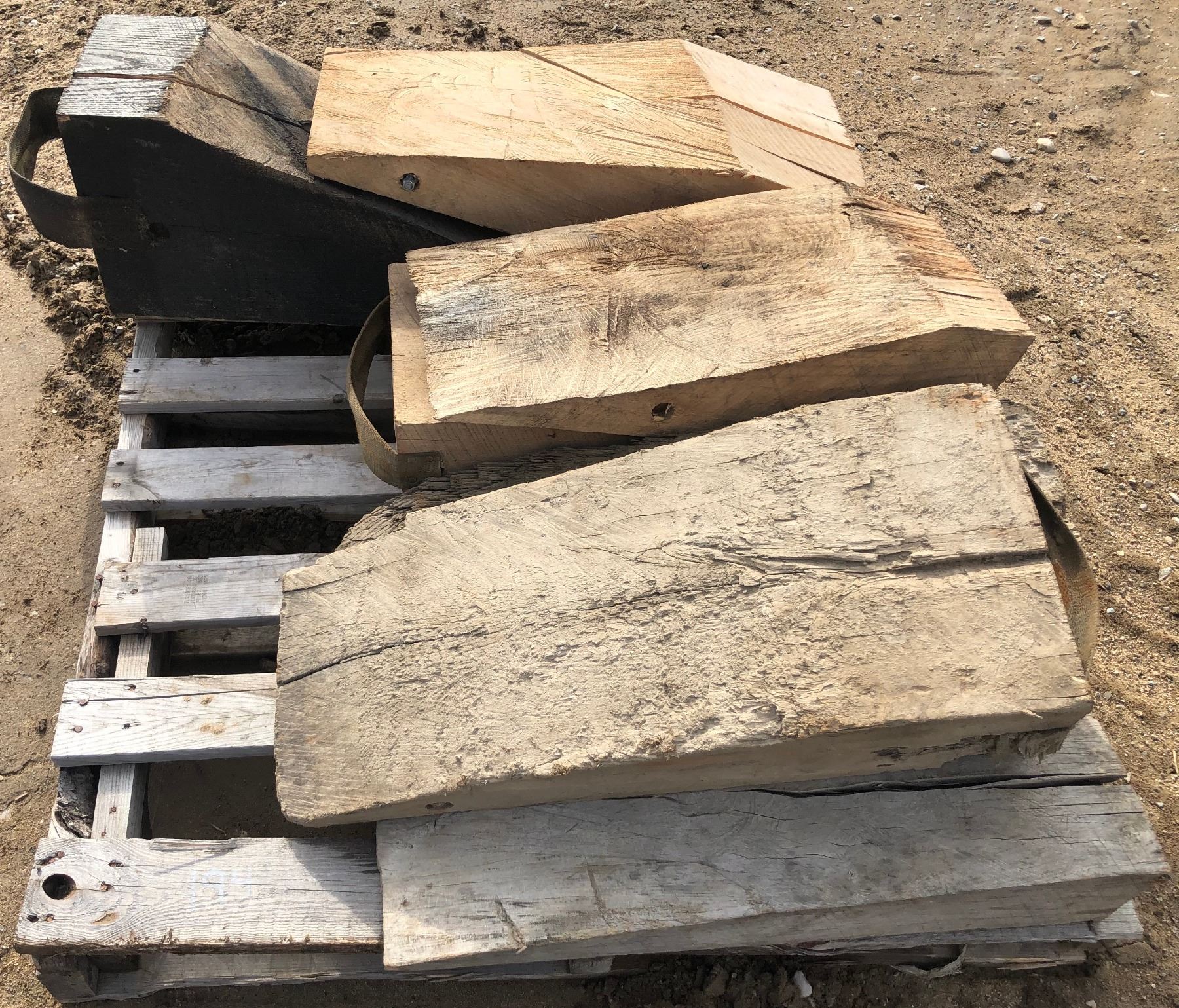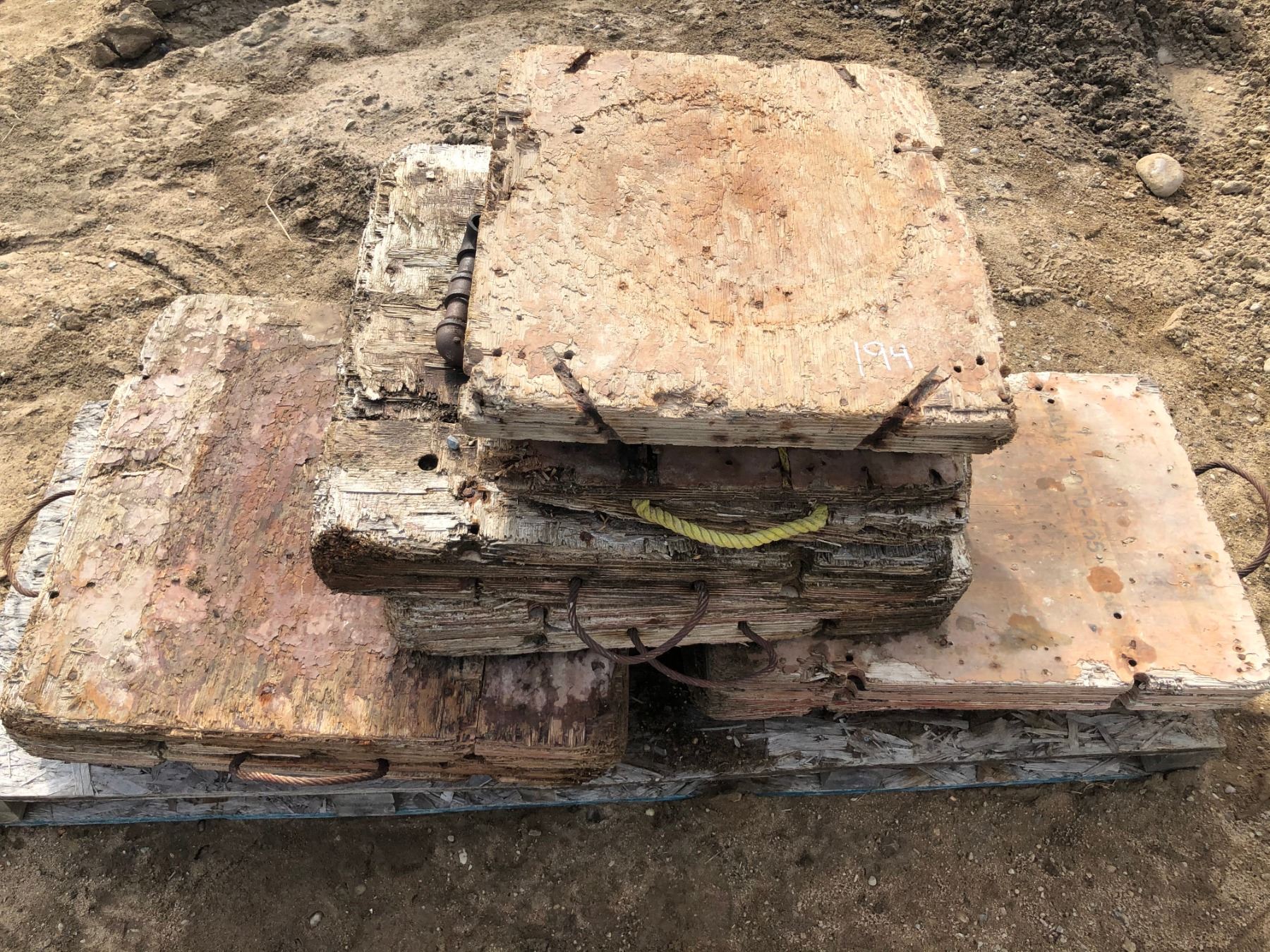 1 X LOT OF OUTRIGGER PADS. 1X LOT OF WOODEN BLOCKS.
